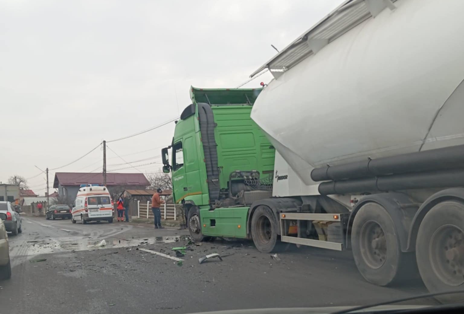 Trafic restricționat pe DN1B, după un accident între un TIR, un microbuz și un autoturism