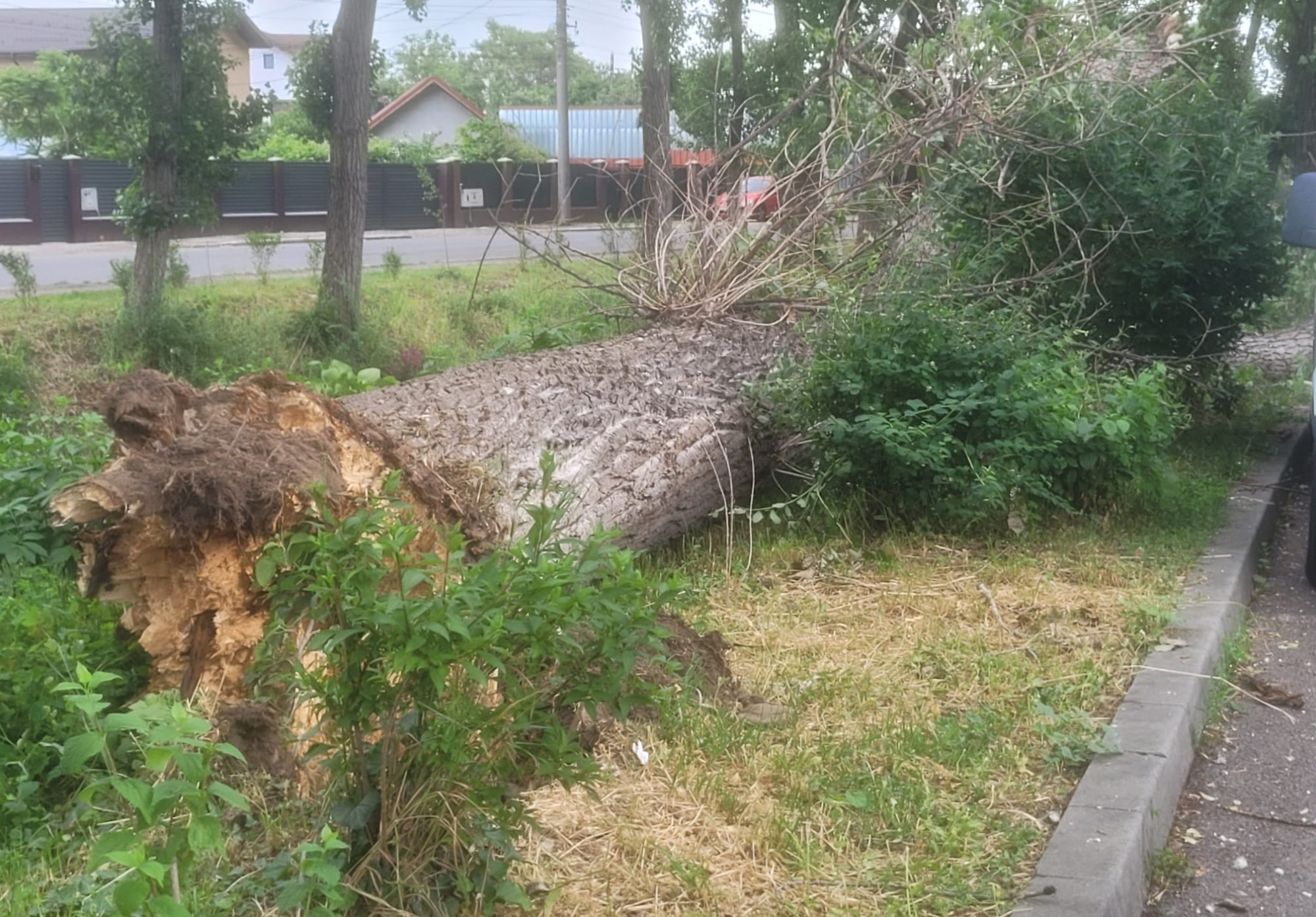 Trebuie precizat că, în zona respectivă, în timpul vijeliilor, mai mulți arbori s-au rupt (foto), producând avarii autoturismelor parcate, punând pe de altă parte în pericol și gospodăriile aflate în imediata apropiere.