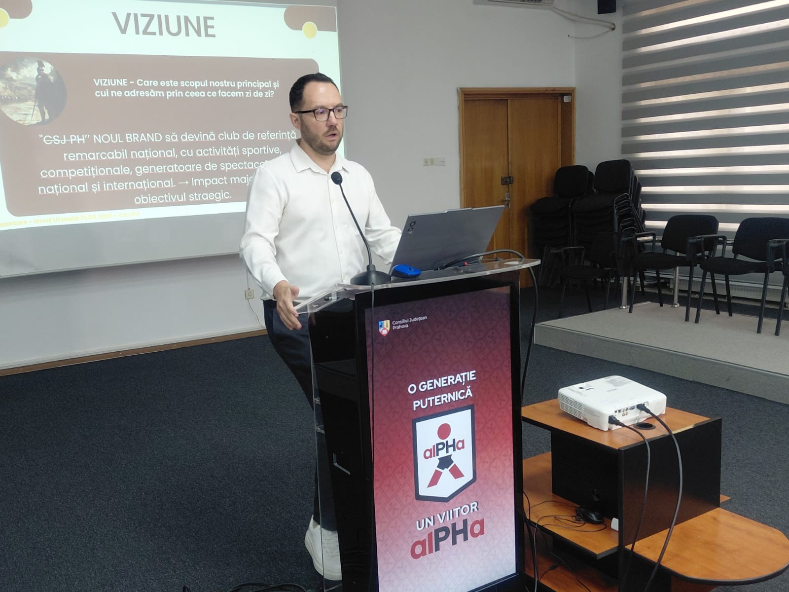 Astăzi vreau să încep prin a vă povesti ce a însemnat pentru noi ultimele șase luni. A fost o perioadă în care am pus ordine, am reașezat lucrurile și am încercat să redăm clubului stabilitate și direcție. Nu a fost simplu – am luat decizii grele, am trecut prin momente delicate – dar toate cu un singur scop: să păstrăm tradiția vie și să pregătim terenul pentru viitor. Am continuat să investim în ramurile tradiționale ale clubului, handbal și baschet, iar în ceea ce privește voleiul, chiar dacă acum este suspendat, rămâne parte din identitatea noastră și îl vom readuce atunci când contextul o va permite. În prima etapă, am ales să ne concentrăm pe ramura feminină, acolo unde avem tradiție, rezultate și susținere din partea comunității. Am făcut asta și pentru a respecta munca cluburilor care deja au construit solid la masculin, cum este cazul CSM Ploiești la baschet băieți. Din această filozofie se naște motto-ul nostru: Creștem acasă. Jucăm pentru Prahova. Ne dorim ca echipele de seniori să fie construite pe baza jucătoarelor crescute aici, în Prahova, pentru că sportul de performanță începe de acasă, cu identitate locală și cu valori clare. Și aici vine partea cea mai frumoasă. Astăzi vă prezentăm alPHa Prahova – noua noastră identitate. Dar alPHa nu înseamnă doar un logo sau un manual de brand. Este povestea unui mod de a fi. Omul alPHa înseamnă autodepășire, reziliență, curaj, disciplină și spirit de echipă. Este cel care știe că succesul nu vine doar din talent, ci din muncă și consecvență. Este cel care se ridică atunci când e greu și care înțelege că nu poate reuși singur, ci doar împreună”, a spus Ionuț Urzeală, în debutul prezentării raportului activității sale din ultimele șase luni la conducerea Clubului Sportiv Județean Prahova.