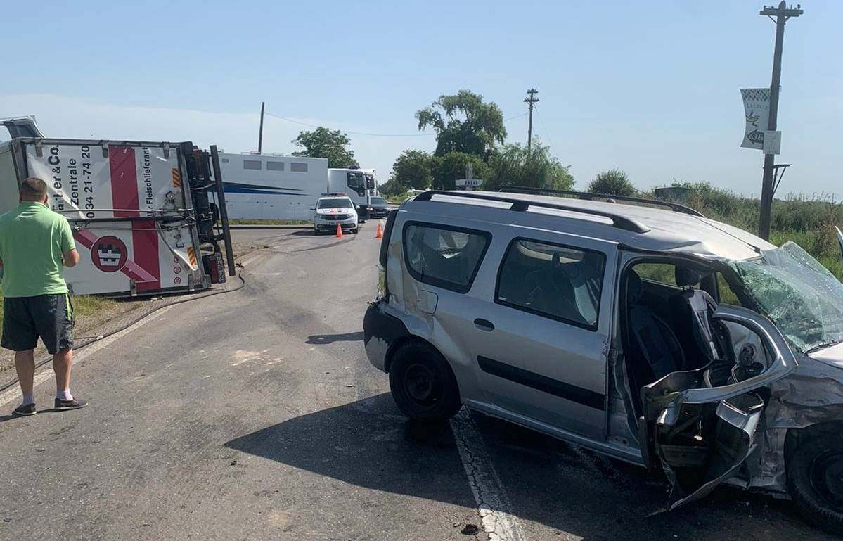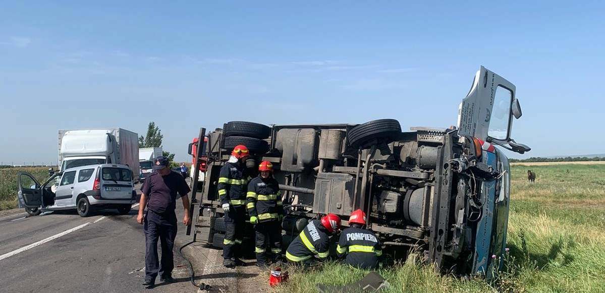 Un camion cu carne s-a răsturnat, pe DN1B, la limita cu județul Buzău. Alte două mașini - implicate în accident