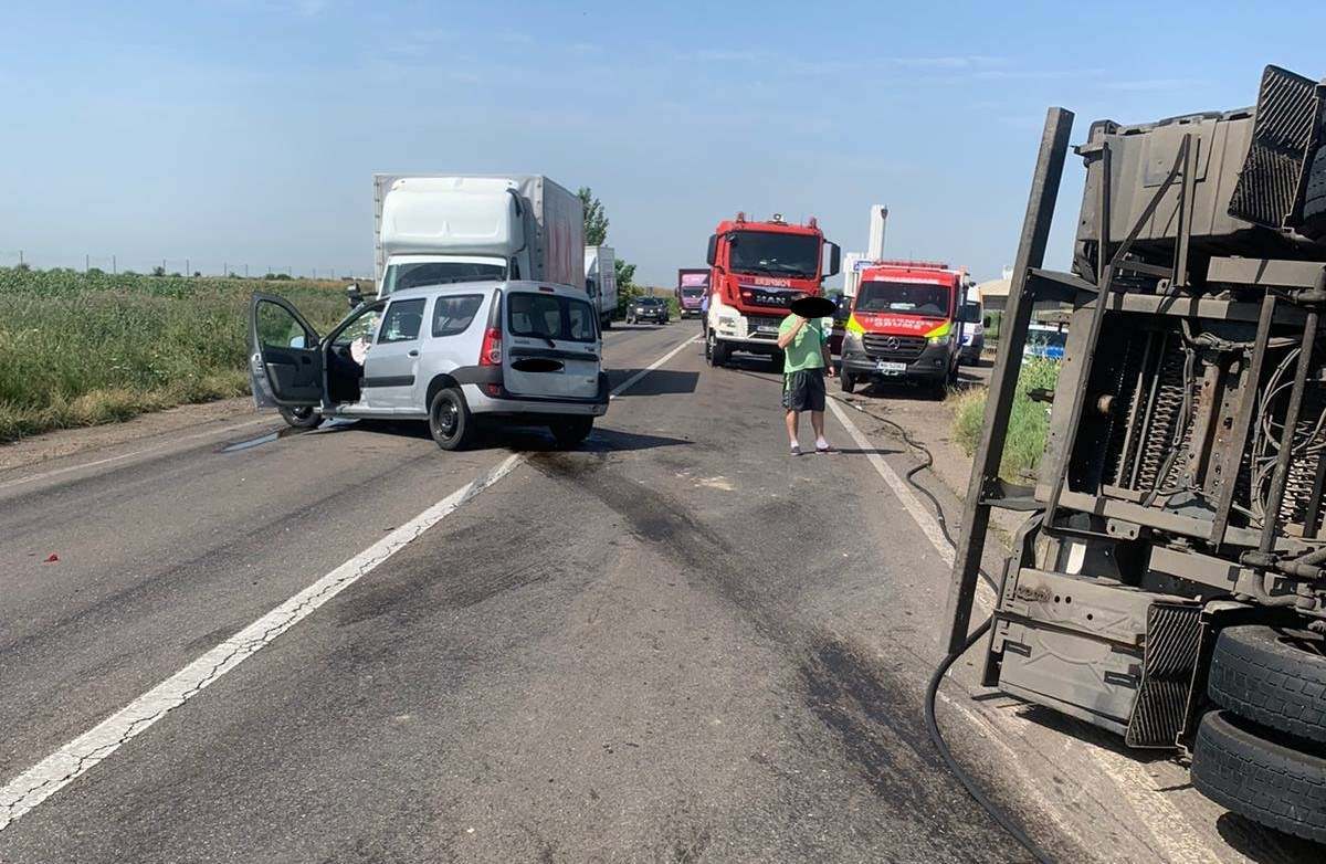 Un camion încărcat cu carne și două autoturisme au fost implicate într-un grav accident rutier petrecut, vineri dimineață, pe DN1B, la limita dintre județele Prahova și Buzău. Conform IPJ Prahova, camionul s-a răsturnat, în afara părții carosabile, iar traficul este restricționat pe sensul Ploiești-Buzău. Cinci persoane se aflau în cele trei autovehicule, dintre care una a fost încarcerată. Este vorba despre un bărbat de 72 de ani, care a fost transportat la spital, potrivit purtătorului de cuvânt al ISU Prahova, Raluca Vasiloae.