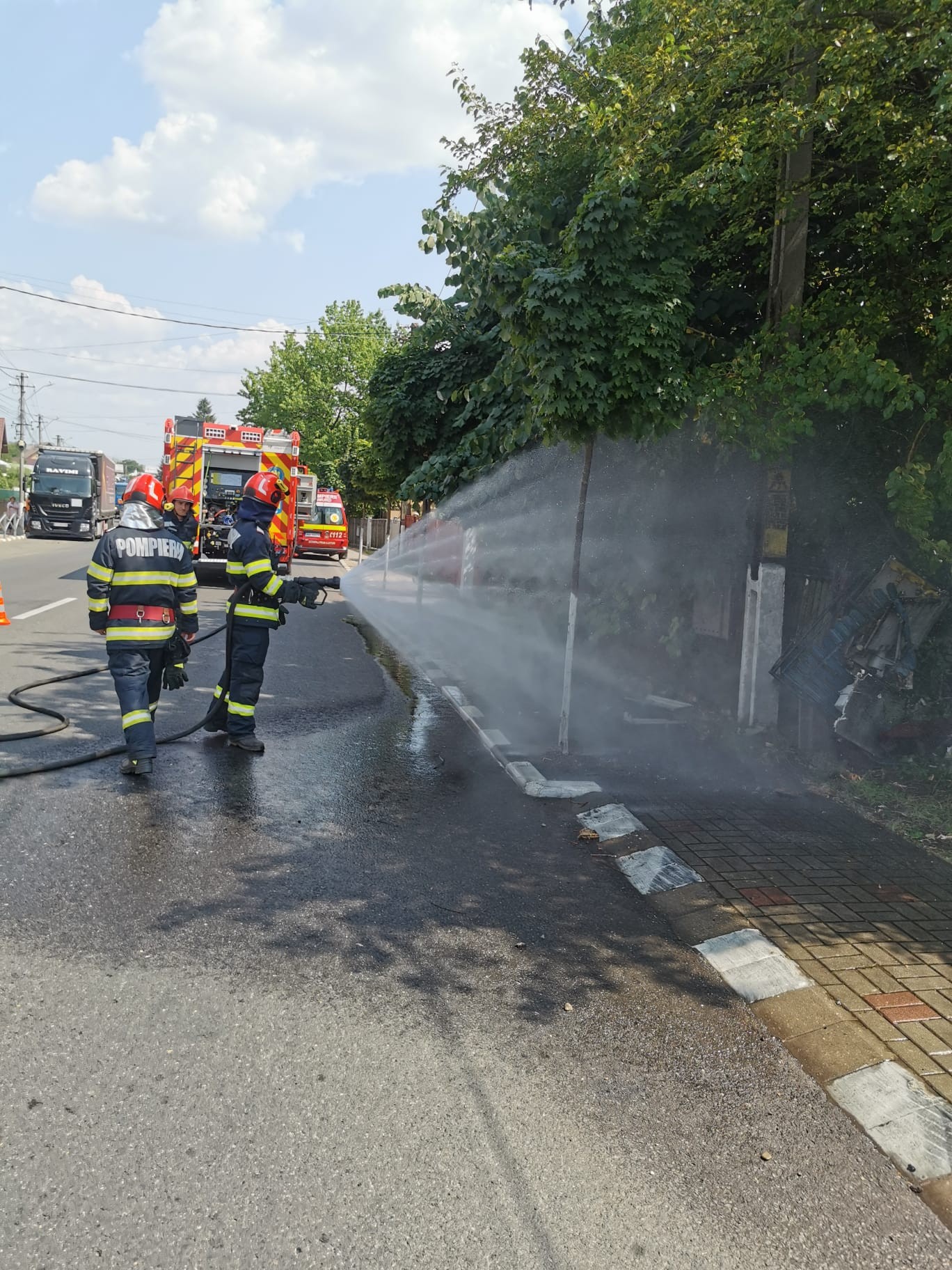 Un autoturism a intrat într-un gard și a avariat o conductă de gaze, în Băicoi. Pompierii au intervenit de urgență
