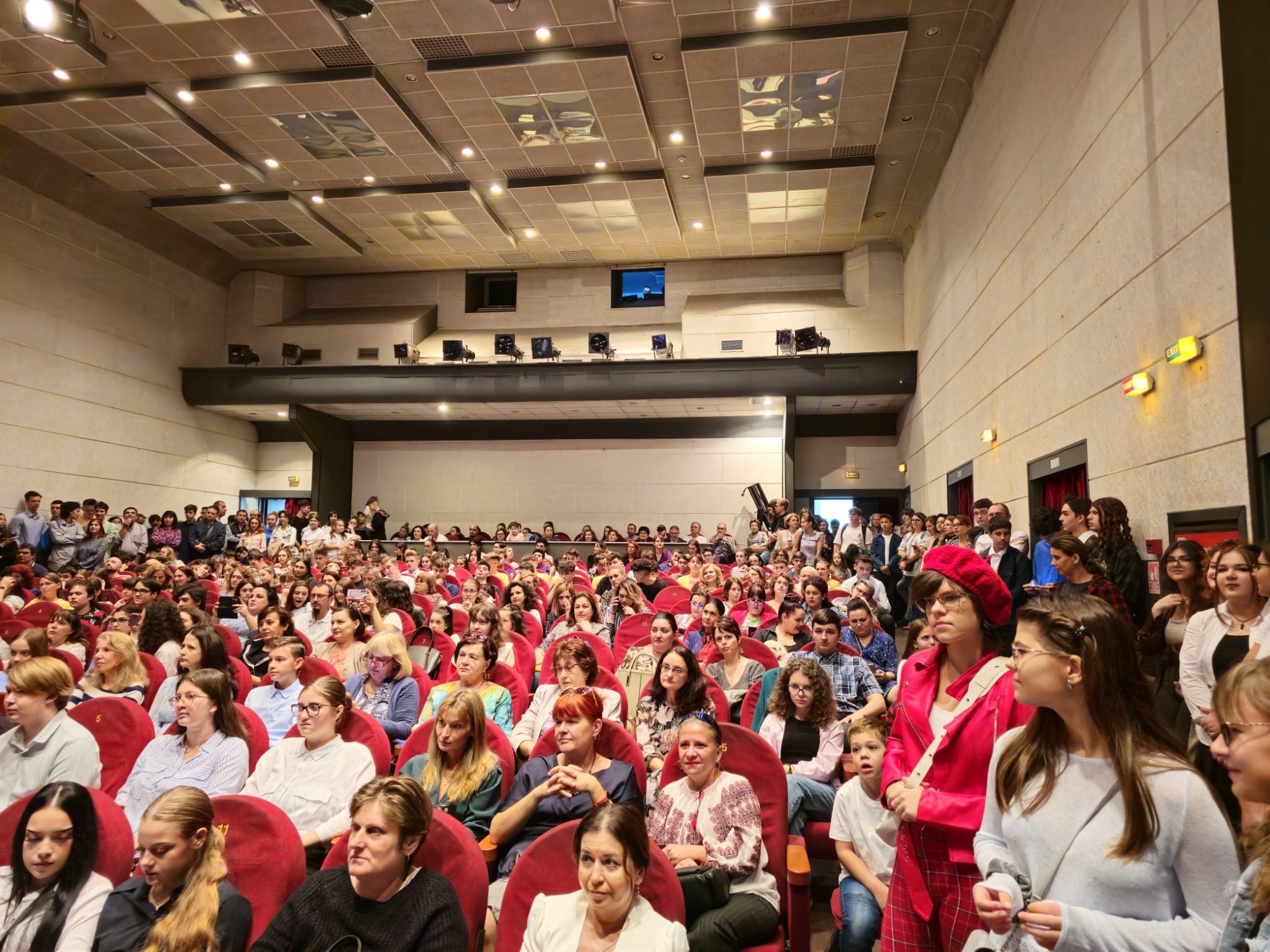Sala Teatrului ”Toma Caragiu” din Ploiești, plină cu elevi olimpici, de Ziua Educației. Toți au fost premiați pentru rezultatele de excepție