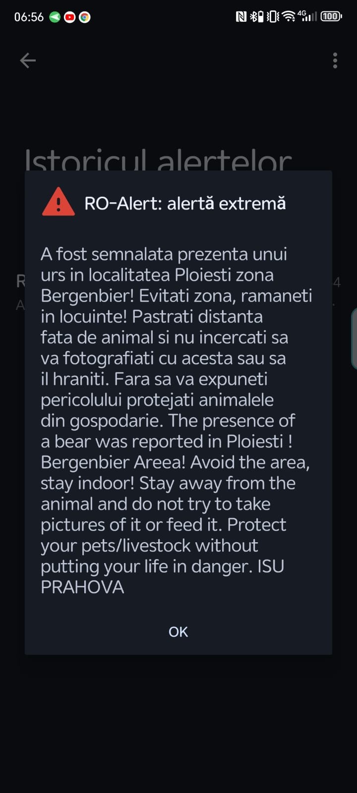 Astfel, primarul Ploieștiului, Andrei Volosevici, se află din nou în fruntea echipei constituite la nivelul autorităților locale pentru depistarea ursului care ar fi apărut, duminică dimineață, în zona fabricii Bergenbier din vestul municipiului. ”Având în vedere mesajul RO Alert emis duminică dimineaţa, 29 octombrie a.c., în jurul orei 07.00, de Inspectoratul pentru Situaţii de Urgenţă (ISU) Prahova, despre prezența unui urs în zona fabricii de bere Bergenbier din localitatea noastră, primarul municipiului Ploieşti, Andrei Liviu Volosevici, s-a deplasat în zona indicată, împreună cu echipa de intervenție constituită în acest sens, pentru luarea măsurilor ce se impun în acest caz. Astfel, primarul municipiului Ploieşti, Andrei Liviu Volosevici, a convocat un grup de lucru în vederea luării de urgenţă a măsurilor de intervenție imediată pentru prevenirea și combaterea atacurilor exemplarelor de urs brun asupra persoanelor și bunurilor acestora, deplasându-se în zona indicată împreună cu reprezentanţii Inspectoratului de Jandarmi Judeţean Prahova. Pe parcursul intervenției, municipalitatea ploieşteană beneficiază de suportul direct al reprezentanţilor Inspectoratului pentru Situaţii de Urgenţă Prahova, Poliţiei Locale Ploieşti, precum şi al reprezentanţilor Poliţiei Municipiului Ploieşti. Totodată, la solicitarea primarului municipiului Ploieşti, la acțiune participă reprezentanții Parcului Memorial “Constantin Stere”, precum şi ai Asociaţiei Vânătorilor şi Pescarilor din judeţul Prahova, care au venit, astfel, în sprijinul autorităților locale cu logistică de profil, necesară în prevenirea și combaterea atacurilor exemplarelor de urs brun. Autorităţile locale monitorizează în continuare această situaţie şi, în acest sens, roagă cetăţenii municipiului Ploiești să ţină cont de avertizările şi recomandările transmise în acest caz de către factorii implicaţi, singurul demers recomandat în situația în care sesizează un pericol fiind acela de a apela numărul de urgență 112”, transmit reprezentanții Primăriei Ploiești.
