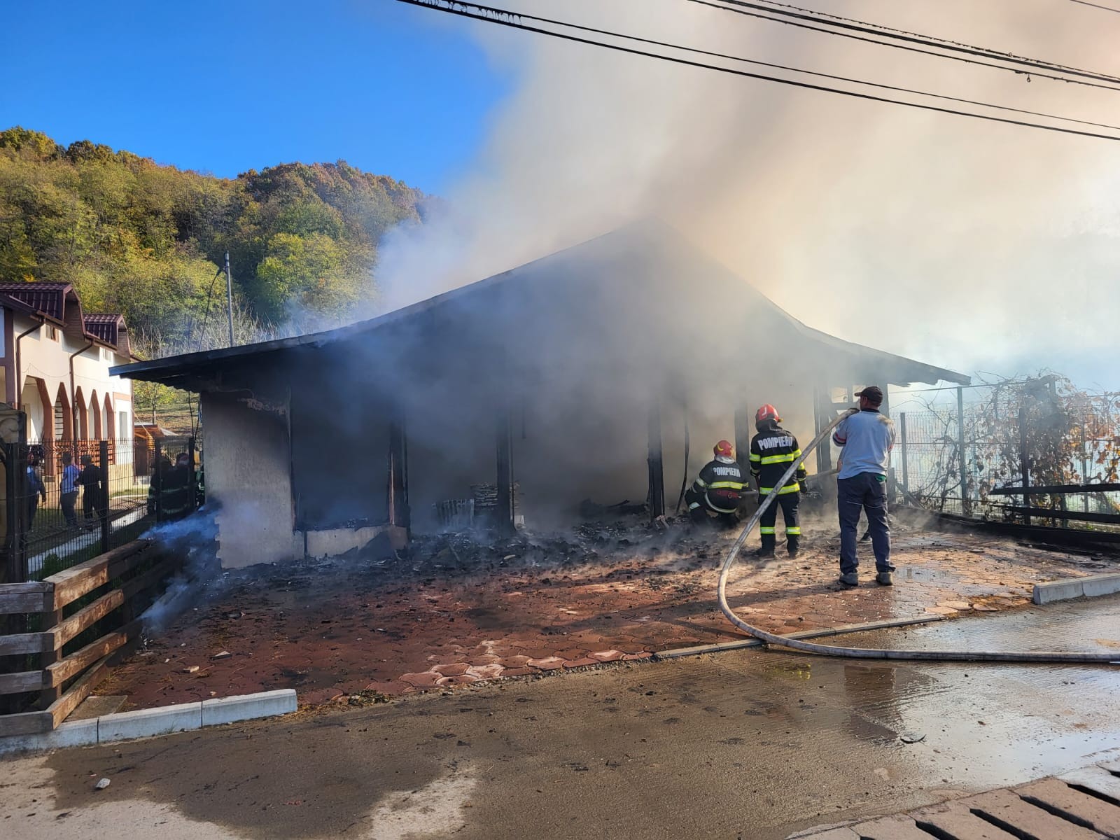 Un incendiu de proporții a cuprins o clădire din comuna prahoveană Vărbilău, miercuri dimineață. Potrivit martorilor de la fața locului, ar fi vorba despre un imobil care care se află lângă o spălătorie auto. Fumul dens emanat în zonă i-a alertat pe localnici, fiind solicitată intervenția pompierilor pentru stingerea flăcărilor. Potrivit ISU Prahova, două autospeciale au intervenit pentru stingerea incendiului, iar două persoane care au suferit atacuri de panică au avut nevoie de asistență medicală la fața locului. Suprafața afectată de flăcări a fost de circa 120 de metri pătrați, la o magazie în care proprietarul avea depozitate mai multe bunuri, pompierii reușind să stingă focul înainte să se extindă și la imobilele din jur. (Foto ISU Prahova)