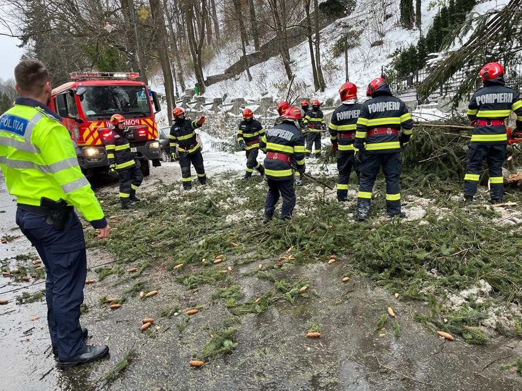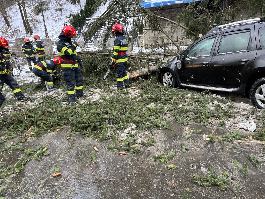 "În urma manifestării fenomenelor meteorologice prognozate la nivelul judeţului Prahova, pompierii militari prahoveni au fost solicitați să intervină, în ultimele 12 ore, atât pentru degajarea copacilor căzuți pe carosabil și pe mașini, cât și pentru degajarea unor elemente din construcții (tabla de pe acoperiș) în 9 cazuri, în localitățile Maneciu, Sinaia, Plopeni și Ploiești", informează ISU Prahova. Din fericire, nu au fost înregistrate victime în niciunul dintre cazuri.