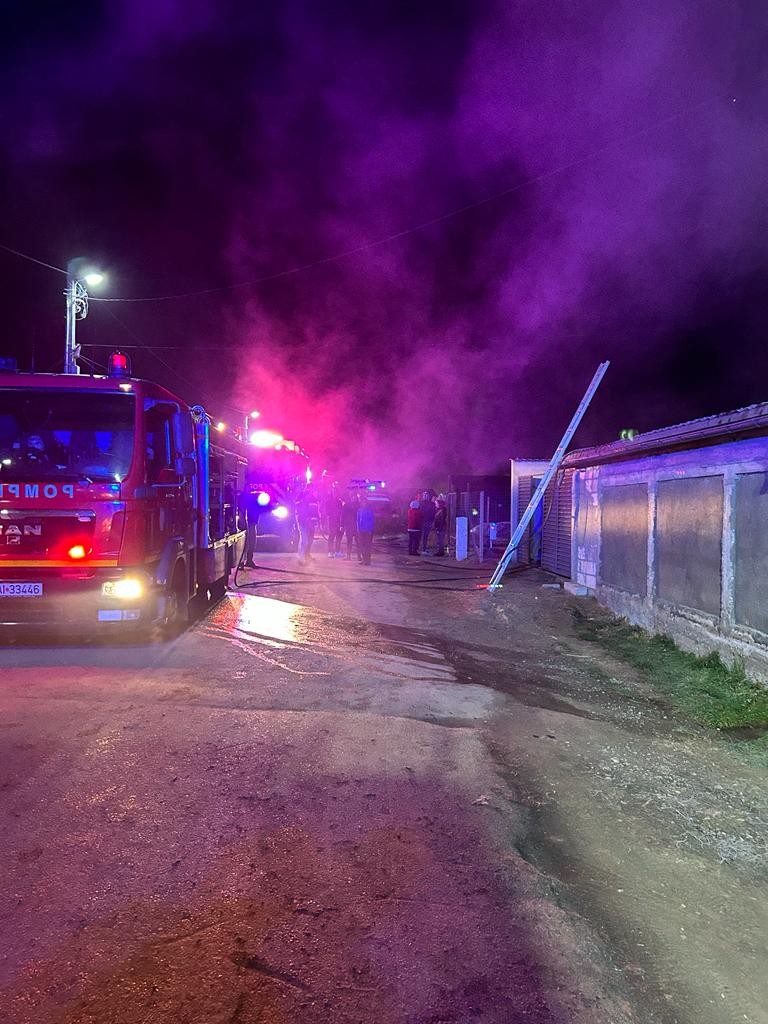 Un adevărat dezastru a avut loc, în noaptea de sâmbătă spre duminică, într-o gospodărie din comuna prahoveană Berceni, sat Moara Nouă. Zeci de porci și păsări au murit, iar proprietarul a suferit arsuri la față și mâini, după ce un incendiu de proporții a izbucnit la locuința sa. La miezul nopții, pompierii Detașamentului 1 de Pompieri Ploiești au fost solicitați să intervină pentru localizarea și lichidarea flăcărilor care cuprinseseră casa, la fața locului deplasându-se patru autospeciale de stingere și un echipaj SMURD. ”La sosirea primelor echipaje de pompieri, incendiul se manifesta la o casă de tip P+1+M, pe o suprafață de aproximativ 150 mp, astfel că forțele de intervenție au fost imediat suplimentate. Pompierii au depus eforturi asidue pentru a împiedica propagarea focului, acesta extinzându-se cu repeziciune și la un grajd aflat în apropiere. Suprafața totală pe care s-a întins incendiul a fost de aproximativ 250 mp. Din nefericire, acest eveniment a fost soldat cu rănirea unei persoane (bărbat, aprox. 40 ani, proprietarul gospodăriei afectate), care a suferit arsuri de gradele II și III pe membrele superioare și la nivelul feței, astfel că a primit îngrijiri medicale la fața locului, ulterior fiind transportat la spital. De asemenea, în grajdul afectat de flăcări erau 30 de porci și 10 păsări moarte. Incendiul a fost lichidat în jurul ore 02:30, fiind stabilit ca a pornit de la o afumătoare lăsată nesupravegheată”, au informat reprezentanții ISU Prahova. (foto ISU Prahova)