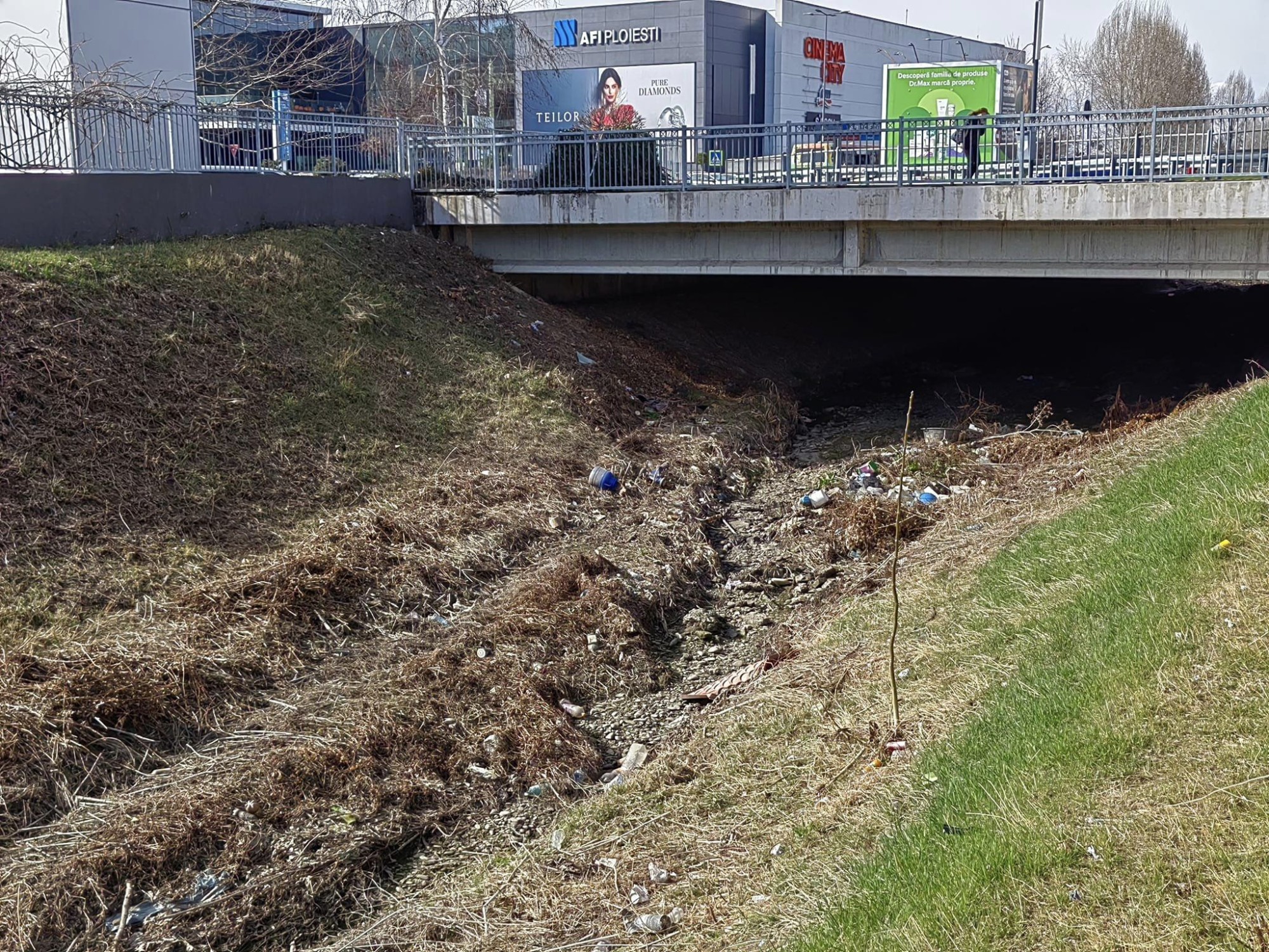 Ploiești/ Albia secată a pârâului Dâmbu a ajuns ghenă de gunoi, în imediata apropiere a unui important centru comercial al orașului