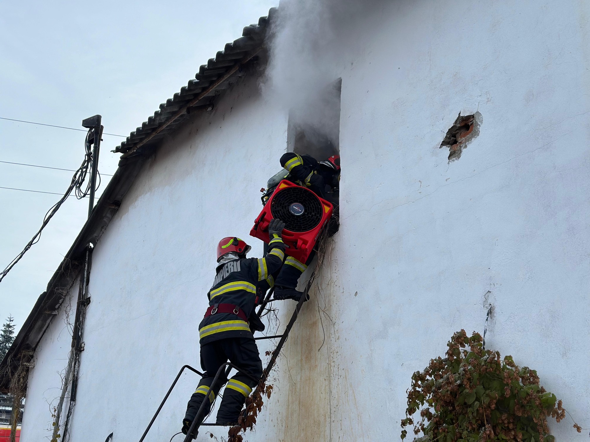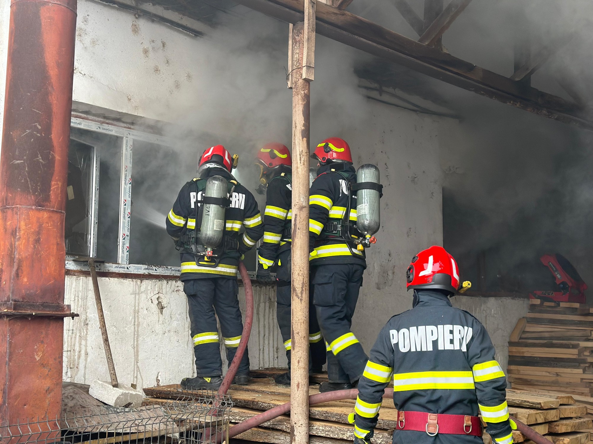 Se lucrează pentru evacuarea fumului, concomitent cu acțiunea pentru localizarea incendiului care a afectat circa 700 de metri pătrați.