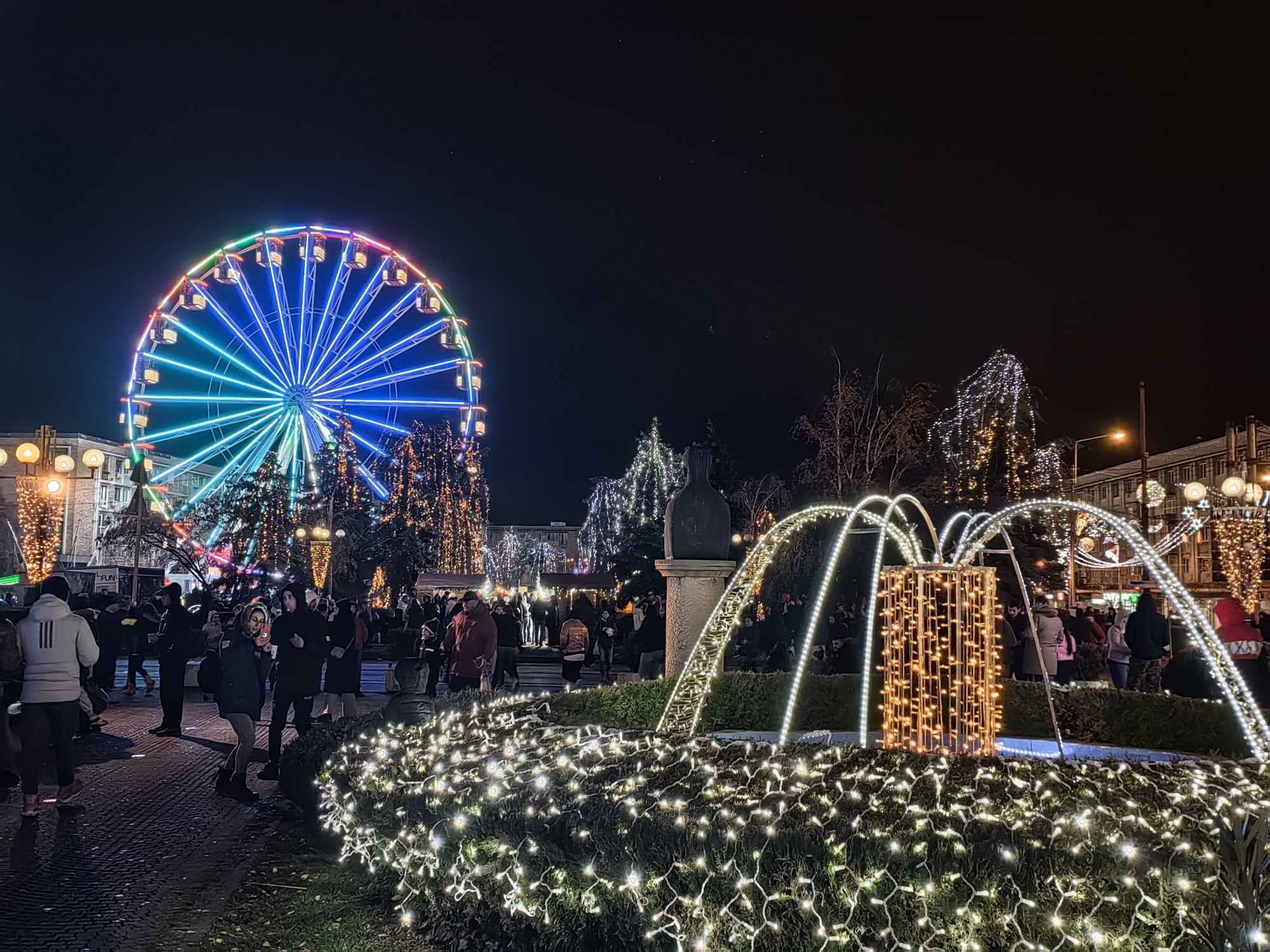 Cu siguranță, centrul Ploieștiului nu a fost mai frumos și mai luminos ca în acest an, cu ocazia Sărbătorilor de Iarnă! Mii de ploieșteni, după unii mai mult de 10.000, au participat, în seara de Sfântul Andrei, la aprinderea luminițelor de sărbătoare și la deschiderea Târgului de Crăciun. Deși unii ar considera că seamănă cu un bâlci și, pe alocuri, ar putea avea dreptate, dacă ești ”înarmat” cu un portofel doldora de bancnote de cel puțin 100 de lei, ai cum să te distrezi în centrul Ploieștiului, până la închiderea târgului. Însă, înainte de orice, ”roata panoramică” este atracția principală, mulți fiind cei doritori să urce în gondole ca să vadă orașul de la înălțimea de 33 de metri. Tocmai de aceea, cel puțin în prima seară, a fost un rând care părea fără sfârșit la acest ”obiectiv”, deși prețul unei ture de roată (25 de lei pentru circa cinci minute) nu este tocmai la îndemâna oricui. În rest, bani să ai, ca să deguști din bunătățile de la căsuțele din lemn aflate în zonă, pentru că o porție de pastramă de berbecuț costă, de exemplu, 20 de lei, iar un pahar de vin fiert - 10 lei. Dacă, Doamne ferește!, poftești la scăricică afumată de porc, un ”țambal” te poate costa cam cât face și la un restaurant de lux de pe Valea Prahovei! Copiii sunt cei mai fericiți. Nu trebuie să țină cont de cheltuieli, pentru că astea le fac părinții. Au la îndemână o grămadă de variante, doar parcă lipsesc dulciurile de Crăciun, atât de căutate în această perioadă. În rest, seara de Sfântul Andrei a fost una de neuitat pentru majoritatea celor prezenți, anul acesta, iar concertul lui Liviu Teodorescu i-a ținut aproape pe mulți dintre cei care au luat parte, în acest an, la deschiderea Târgului de Crăciun și la aprinderea luminițelor din oraș. Mai trebuie precizat ceva: municipalitatea ploieșteană cheltuie pentru acest eveniment 10.000 de lei, restul de 150.000 de lei, adică grosul cheltuielilor cu serviciile necesare organizării, fiind susținut de Consiliul Județean Prahova.