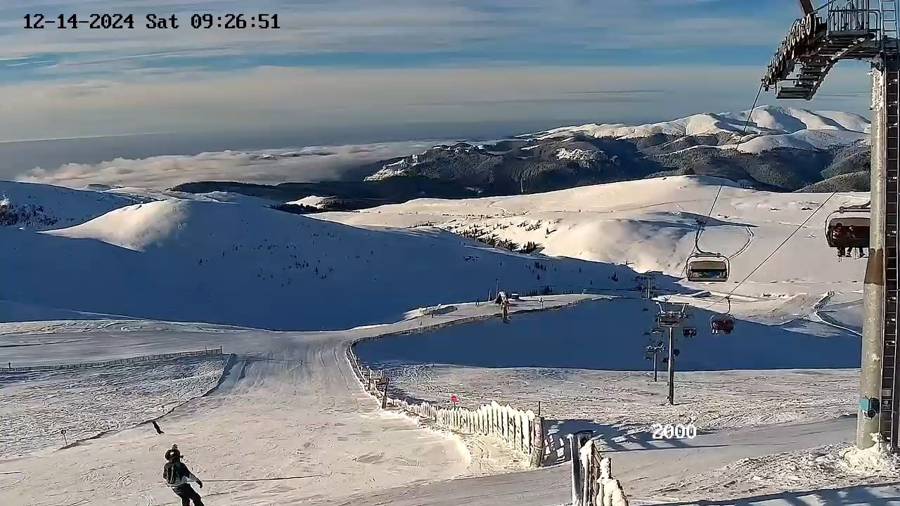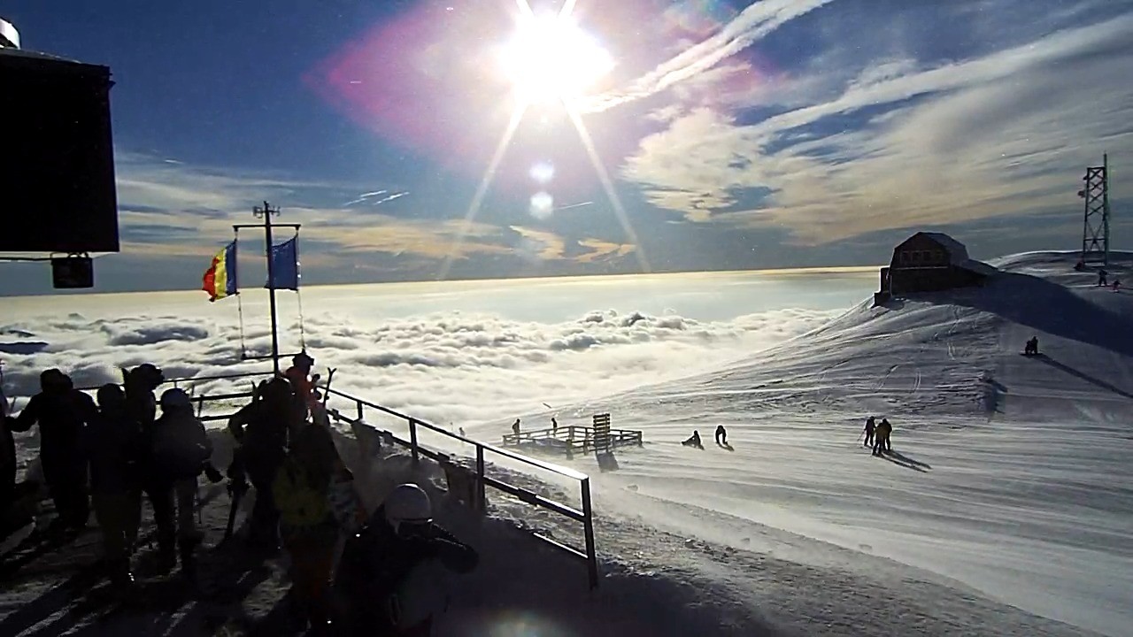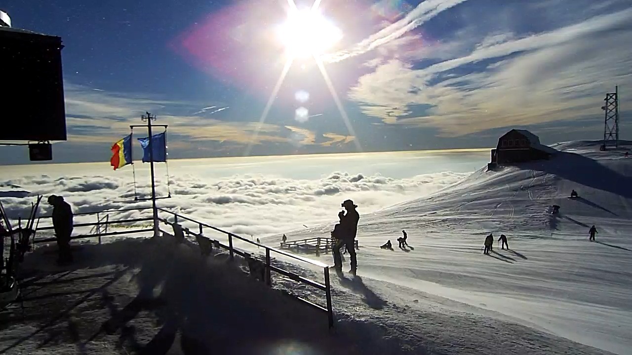 Imagini de vis, sâmbătă dimineață, pe domeniul schiabil de mare altitudine din Sinaia. Schiorii care au venit, încă de la deschiderea instalațiilor de transport pe cablu, pentru a urca pe pârtiile de la Cota 2000, au avut parte de o priveliște de neuitat, în ciuda vântului care a bătut cu putere: deasupra cerul senin și soarele strălucitor, iar dedesubt, o mare de nori! Vestea bună: pe domeniul schiabil din Sinaia sunt amenajate și deschise pârtiile Valea Soarelui 1, Valea Soarelui 2, Lăptici 1, Lăptici 2, Valea Dorului, Panoramic, Floare de Colț, Călugărul 1, Călugărul 2, Cocora și Variantă. Drumul de Vară este practicabil până la Cota 1500. Vestea mai puțin bună: Instalațiile sunt la limita de funcționare, din cauza vitezei vântului și există riscul opririi acestora înainte de terminarea programului, după cum anunță responsabilii de pe domeniul schiabil sinăian. La gondolă 1400, aglomerație mare! (sursa imagini: www.sinaiago.ro)