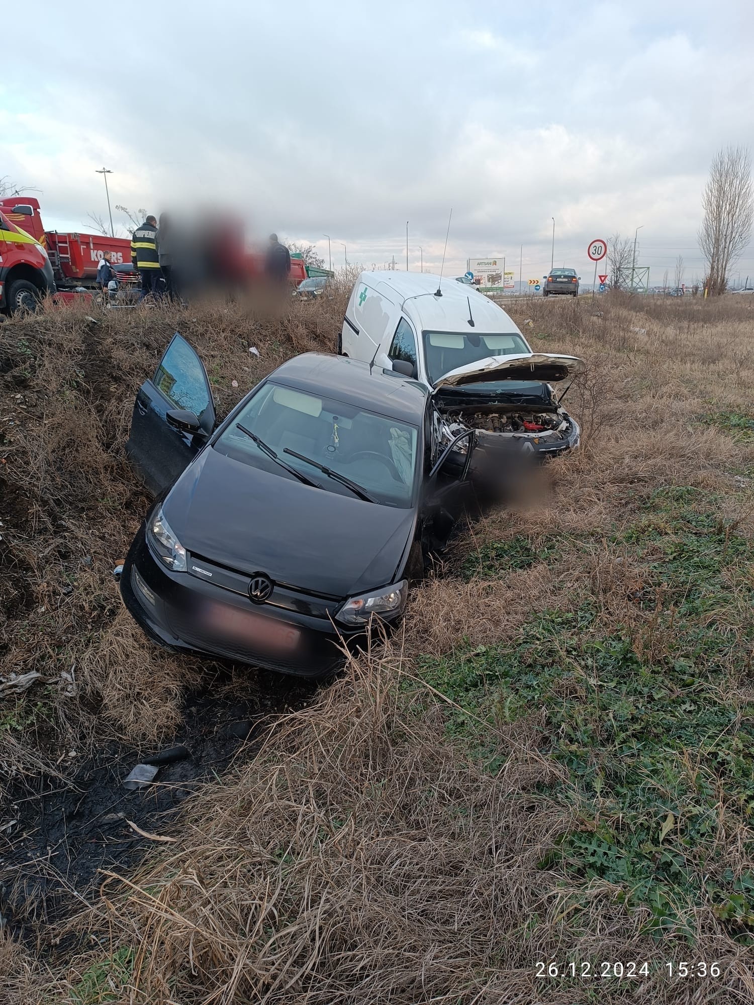 Trei autoturisme au intrat în coliziune, în Blejoi. Două persoane au fost rănite