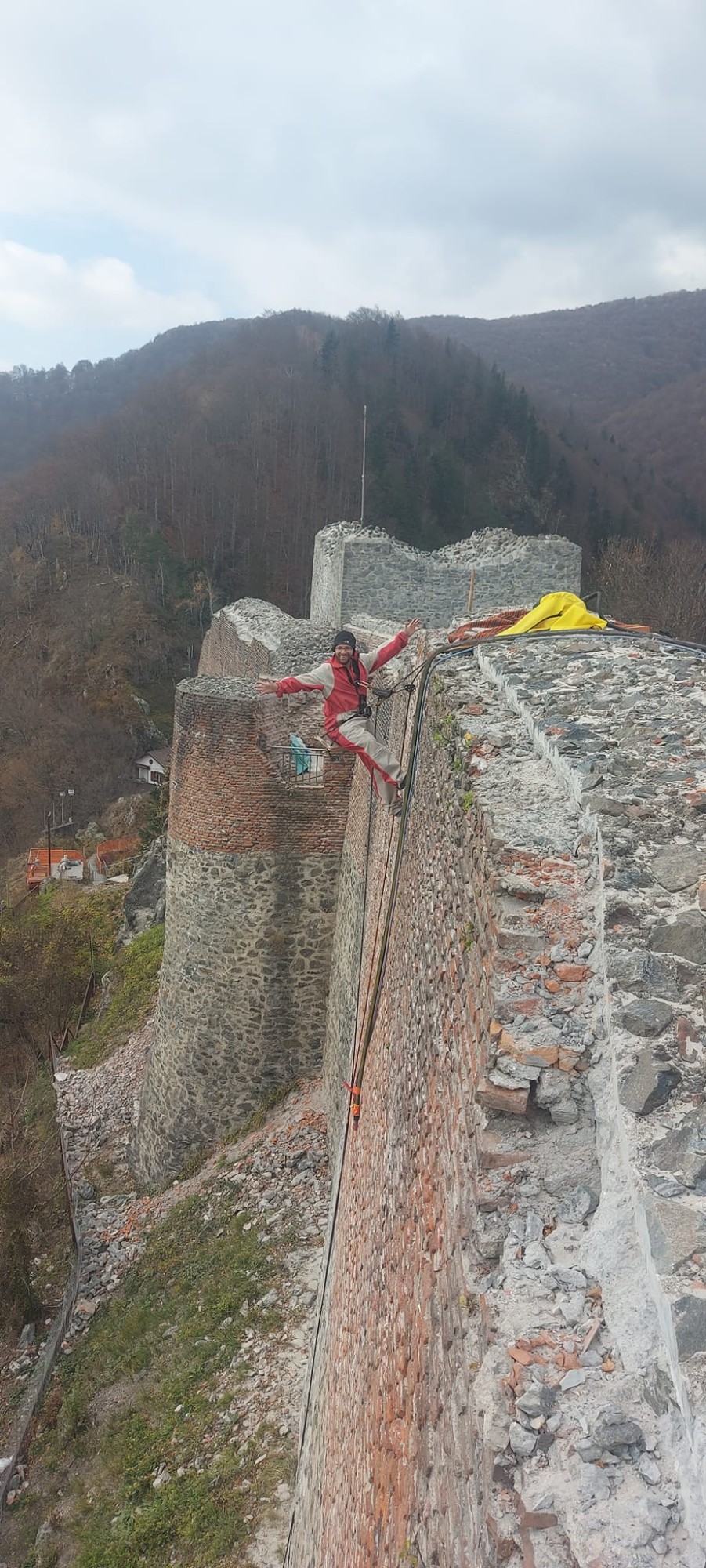 La lucrările de reabilitare a cetății au contribuit și alpiniștii utilitari prahoveni din Azuga, specializați și în astfel de intervenții, care au muncit din greu și în condiții extrem de dificile la zidurile exterioare ale fortăreței. Echipa de la PINJOK TOPSERV SRL din Azuga a lucrat vreme de aproape doi ani și jumătate la acest proiect, numai în perioada sezonului cald, când erau posibile lucrările la ziduri. De altfel, toate materialele de construcții au fost transportate pe șantier exclusiv cu ajutorul elicopterului.