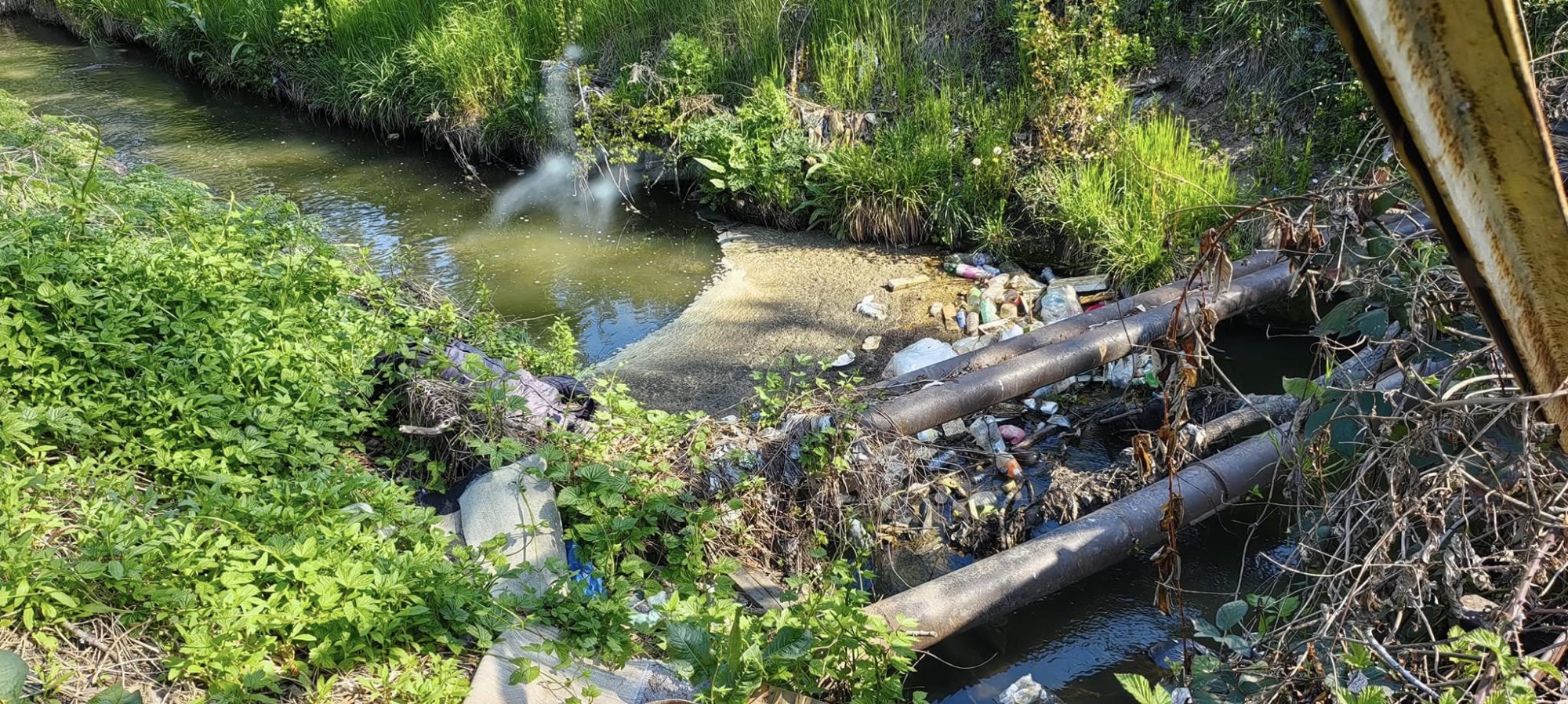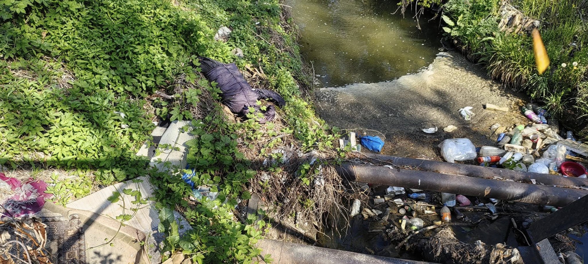 Pârâul Dâmbu - clăbuci și covoare aruncate după ”curățenia” de Paște