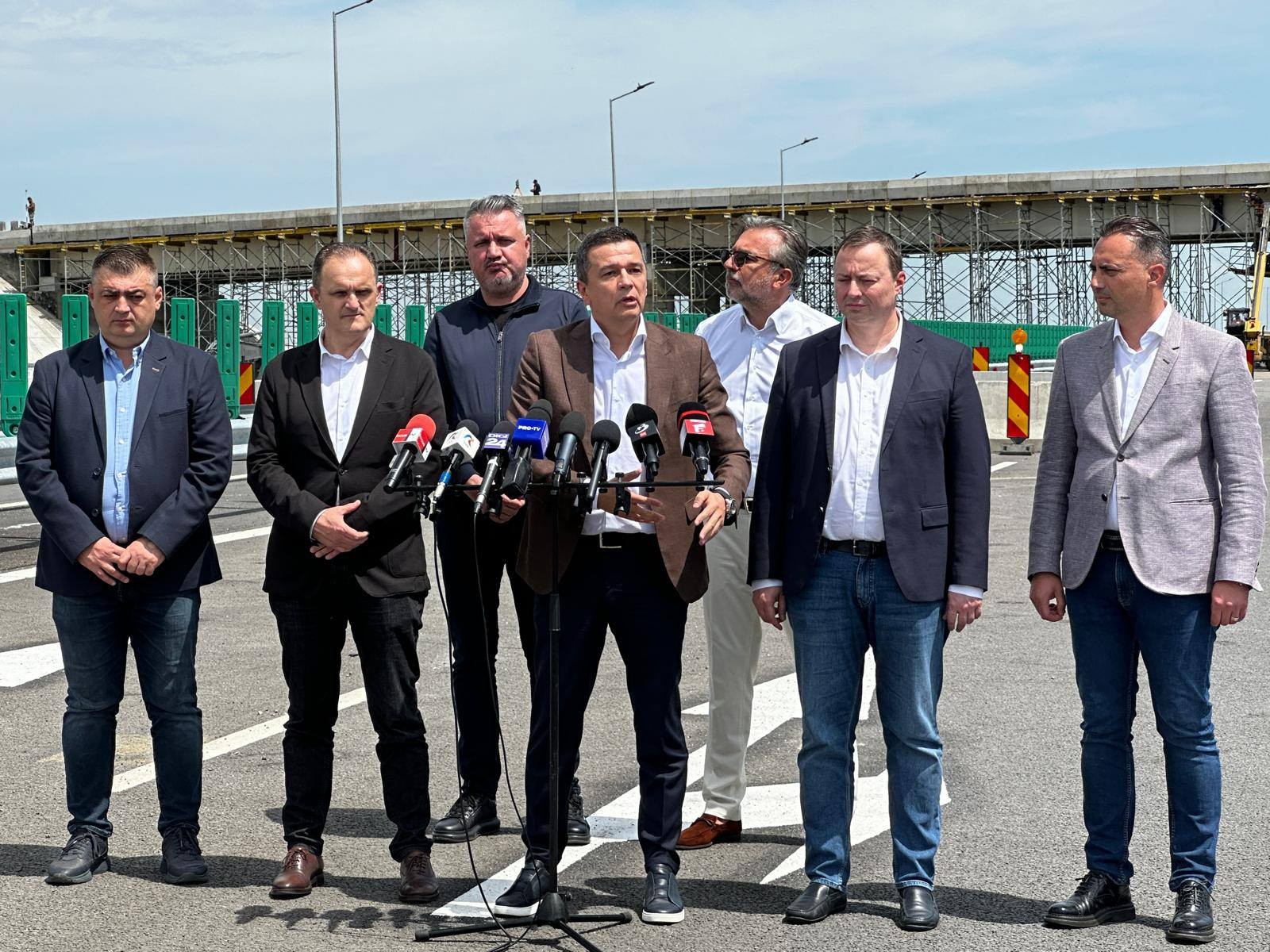 Sorin Grindeanu: ”Am ținut să vin să văd stadiul lucrărilor pe acest lot 2 care va face legătura între Mizil și Pietroasele, am avut discuții și cu constructorul și cu supervizorii și cu toată lumea implicată în acest proiect, suntem la aproape 99% ca stadiu. Sunt trei poduri unde sunt anumite lucruri care trebuie remediate, am comadnat și o expertiză care, la comanda CNAIR, va da anumite soluții. Cert este că, în luna iunie, în a doua jumătate, spre final de iunie, vom reuși să dăm în circulație acest lot. Dar fac și următoarea precizare: nu doar acest lot, ci și acei kilometri de la sfârșitul lotului 2, care vor face legătura cu lotul 3, astfel încât să facem descărcarea la Stâlpu. Adică încă trei kilometri din lotul 3, care va fi gata la sfârșitul acestui an. De asemenea, venind dinspre Focșani, va fi dat în folosință și acel pod și descărcarea aferentă care face legătura cu autostrada care este deja în circulație de la Buzău spre Focșani.(...) Estimez, fiind la final de mandat, dacă anul trecut din autostrada A7 s-au dat în circulație cam 100 de kilometri, anul acesta, pe graficele pe care le avem, în jur de 160 -170 de kilometri din autostrada A7 pot fi dați în circulație, urmând ca în 2026, în prima parte, restul de 60-70 km care au mai rămas să poată fi inaugurați, astfel încât de la Ploiești sau de la Dumbrava până la Pașcani să se poată circula pe cei 320 de kilometri. (...) Față de lotul 1, de la Dumbrava la Mizil, lucrările au mers mai încet pe acest lot 2. Lotul 1 a fost dat în circulație la sfârșitul anului trecut. Aici, din păcate, pentru că firma românească a mers foarte bine, au fost anumite sincope din partea companiei bulgare”.