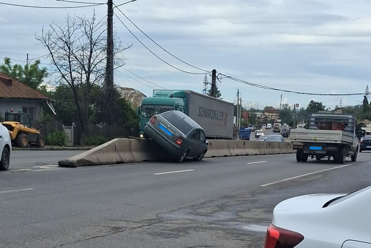 Un incident mai puțin obișnuit a avut loc, miercuri, la prânz, pe DN1B, pe raza comunei Bucov. Șoferul unui autoturism a pierdut controlul volanului și a intrat direct în parapetul care desparte sensurile de mers, rămânând suspendat pe separatorul din beton. Evenimentul a devenit viral pe rețelele de socializare, intrând în categoria ”cascadorii” în trafic. Potrivit martorilor, accidentul a avut loc chiar în zona postului de poliție din Bucov... (sursa foto: Grup Info Trafic Prahova)