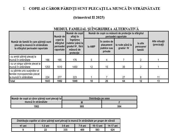 Potrivit datelor Direcției Generale de Asistență Socială și Protecția Copilului Prahova, la finalul lunii iunie a acestui an, în evidențele instituției se aflau 1982 de copii prahoveni ai căror părinți erau plecați la muncă în străinătate. În 195 de cazuri, ambii părinți se aflau în căutarea unei vieți mai bune, peste hotare, iar 277 de copii care se aflau în grija unui singur părinte au rămas sub protecția familiei extinse, în marea lor majoritate.