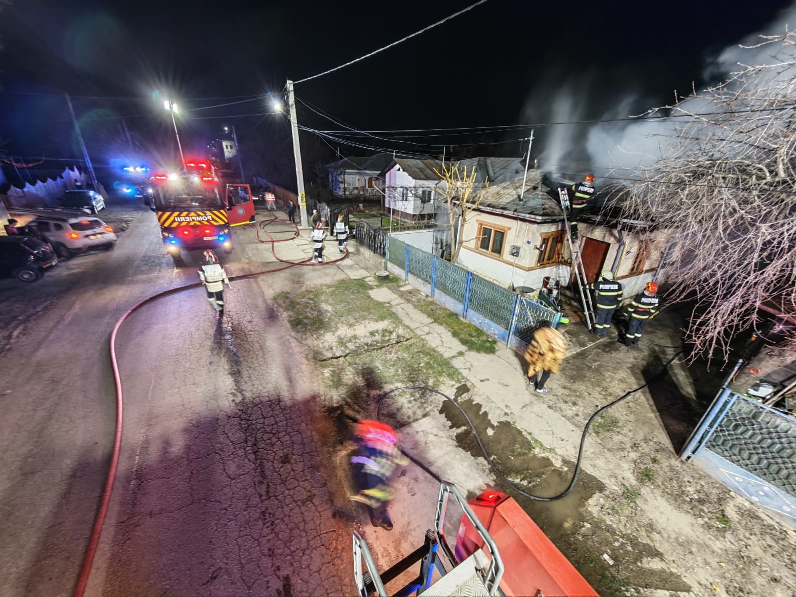 La fața locului au fost mobilizate inițial două autospeciale de stingere cu apă și spumă și o ambulanță SMURD din cadrul Detașamentului 2 Ploiești. La sosirea echipajelor de pompieri, incendiul se manifesta generalizat la nivelul acoperișului unei locuințe și la o anexă gospodărească, afectând o suprafață de aproximativ 150 de metri pătrați. Având în vedere amploarea incendiului, forțele de intervenție au fost suplimentate cu o autocisternă, a transmis ISU Prahova.