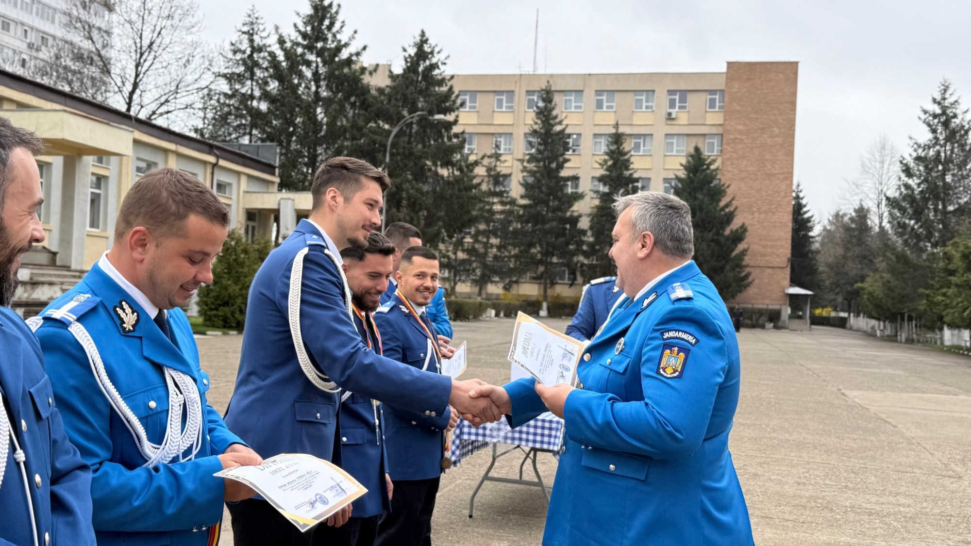 Ceremonia a continuat cu un moment deosebit de important pentru viața profesională a unor cadre ale unității – avansarea în gradul militar următor înainte de expirarea stagiului minim. Șapte jandarmi au fost recompensați pentru profesionalismul, dedicarea și rezultatele deosebite obținute în activitate. Evenimentul s-a desfășurat în prezența reprezentanților autorităților locale și a partenerilor instituționali.