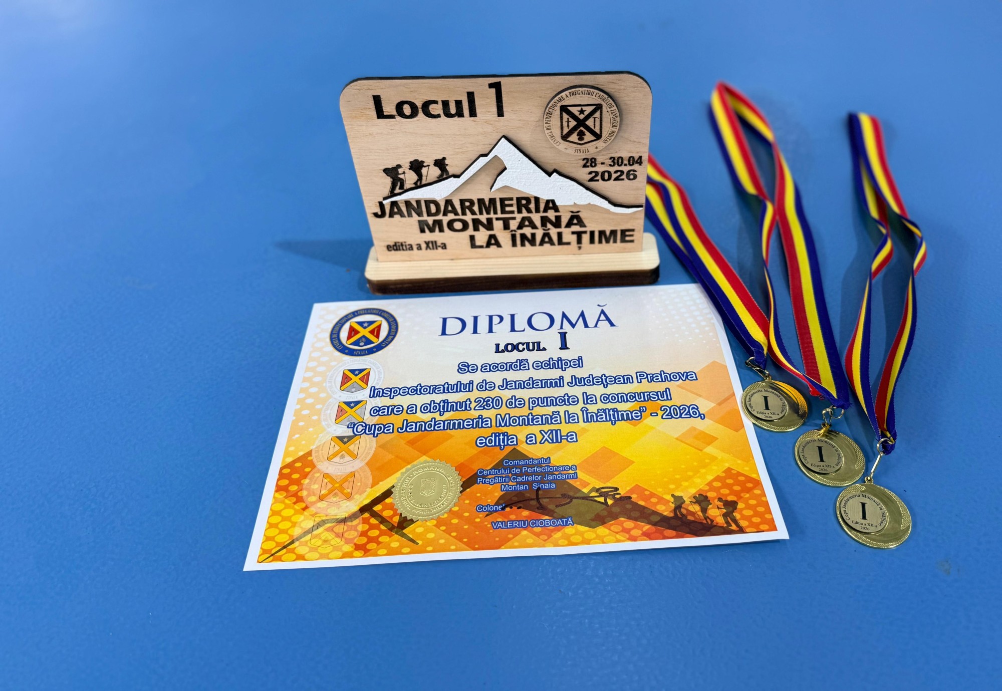 Plutonier adjutant-șef Hogea Mihai, plutonier adjutant Tudor Alin și plutonier Banciu Ioan au reprezentat Inspectoratul de Jandarmi Județean Prahova la „Cupa Jandarmeriei la Înălțime”, organizată de Centrul de Perfecționare a Cadrelor Jandarmi Montan Sinaia, în perioada 28–30 aprilie 2026, competiție dedicată jandarmilor din structurile montane și acțiuni speciale. Echipa s-a clasat pe cea mai înaltă treaptă a podiumului, demonstrând profesionalism, pregătire fizică și sincronizare perfectă. Participarea constantă a jandarmilor montani la această competiție este confirmată de rezultatele obținute de-a lungul timpului: din cele patru participări, la trei ediții s-au clasat pe locul I!
