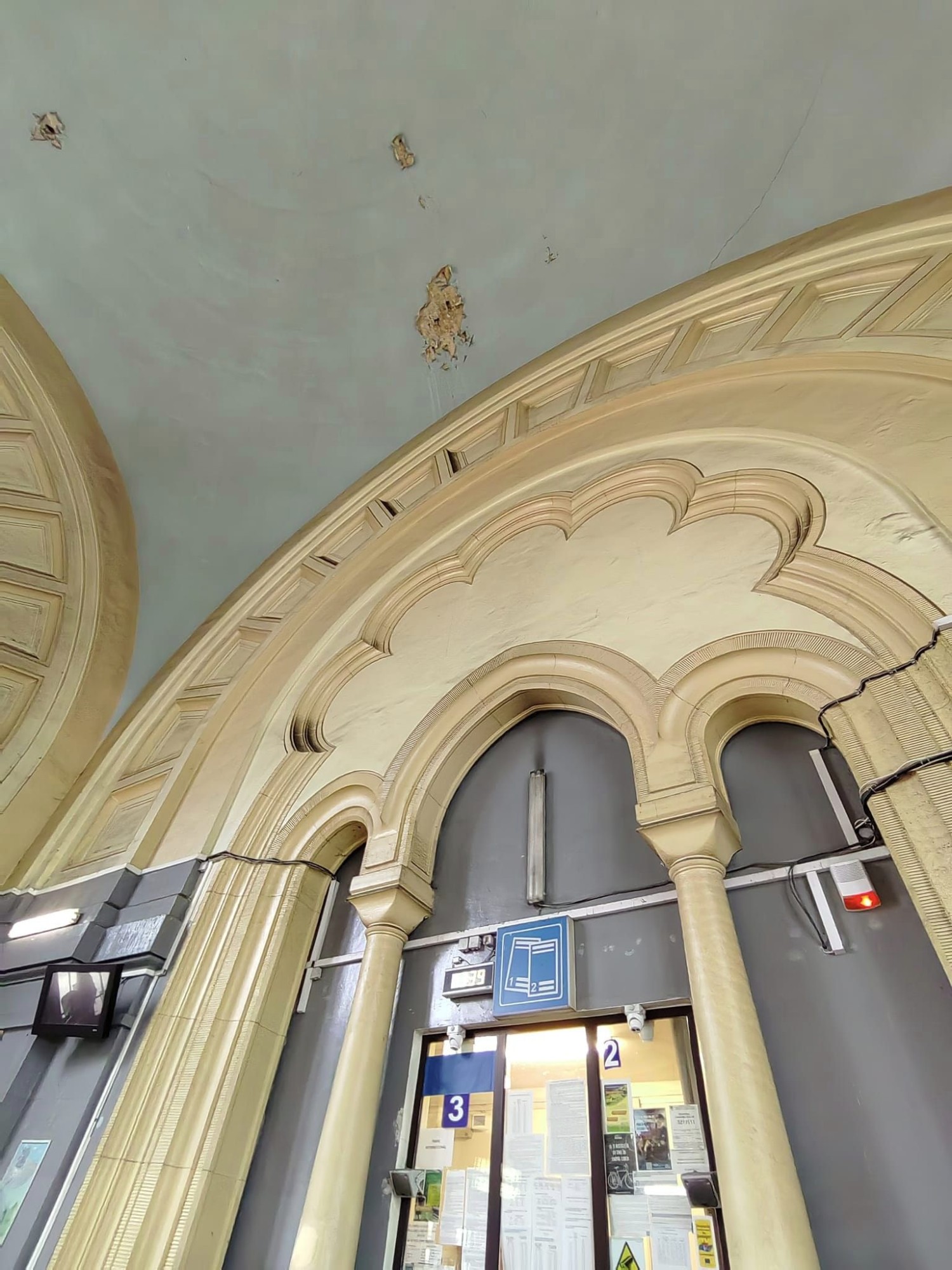 Deși, de la distanță, Gara Sinaia încă arată bine, vechimea și degradarea își spun cuvântul, fiind evident că această clădire-simbol are nevoie de reparații, în special în sala mare de așteptare destinată călătorilor. O cupolă spartă pe alocuri, în interior, cu găuri inestetice și cu ziduri înnegrite, peroane care - în ciuda aparentei curățenii - poartă un strat vechi de murdărie...