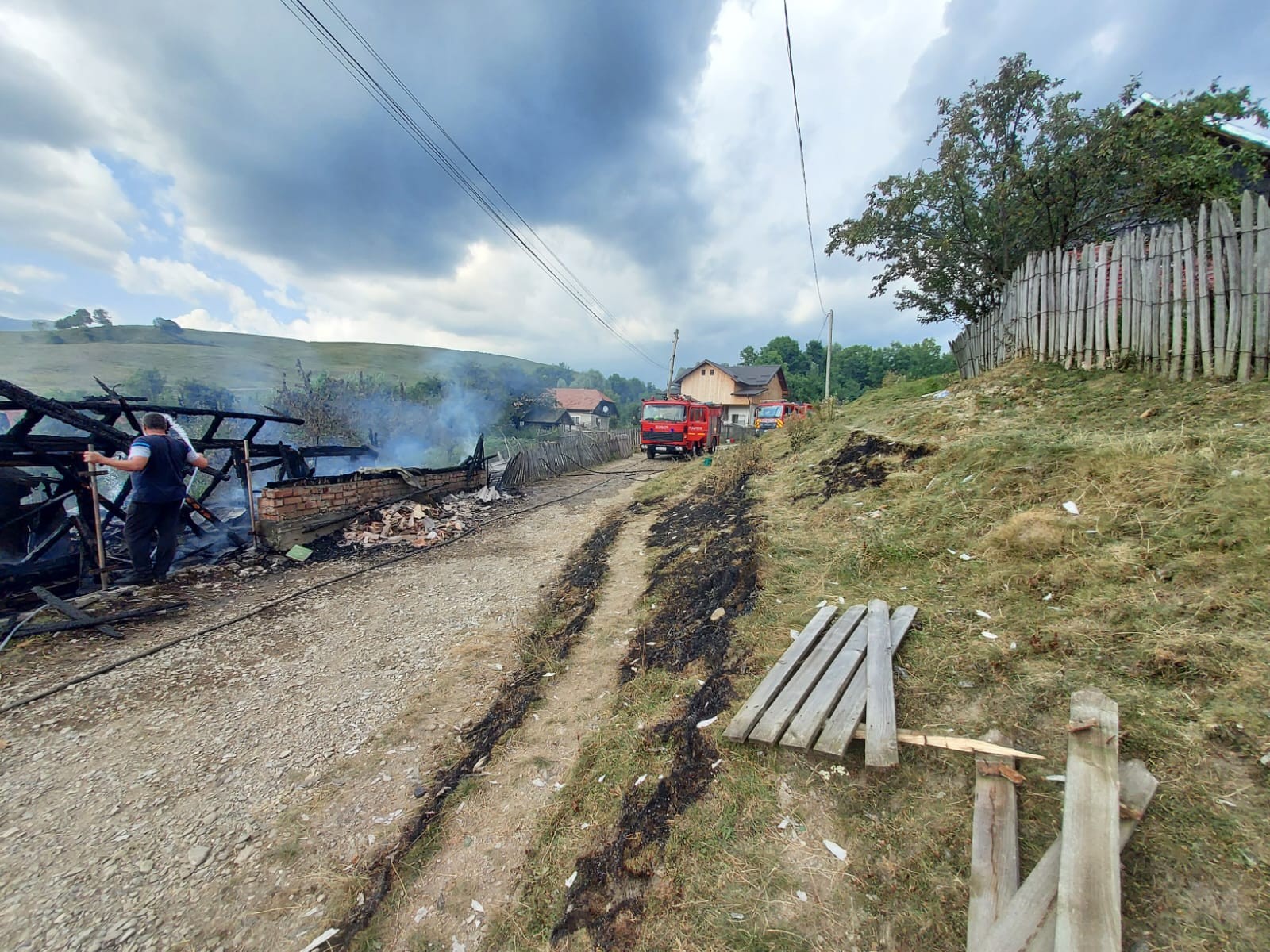 Pompierii militari din cadrul Detașamentului de Pompieri Sinaia au intervenit, vineri după-amiază, pentru localizarea și lichidarea unui incendiu produs într-o gospodărie din comuna Secăria, unde s-au deplasat patru autospeciale de stingere și un echipaj SMURD. La sosirea pompierilor, flăcările se manifestau generalizat la nivelul unui grajd, pe o suprafață de aproximativ 150 mp, existând riscul de a se propaga la o locuință. "Pompierii au depus eforturi pentru localizarea incendiului și împiedicarea propagării acestuia la vecinătăți. Din păcate, în incendiu au ars animalele adăpostite în acel loc, 3 porci, un vițel și în jur de 30 de păsări. De asemenea, o femeie a suferit atac de panică si fost asistată de către echipajul SMURD, însă a refuzat transportul la spital. Cauza probabilă de incendiu: scurtcircuit electric", a transmis ISU Prahova. (sursa foto ISU Prahova)