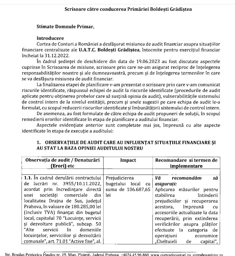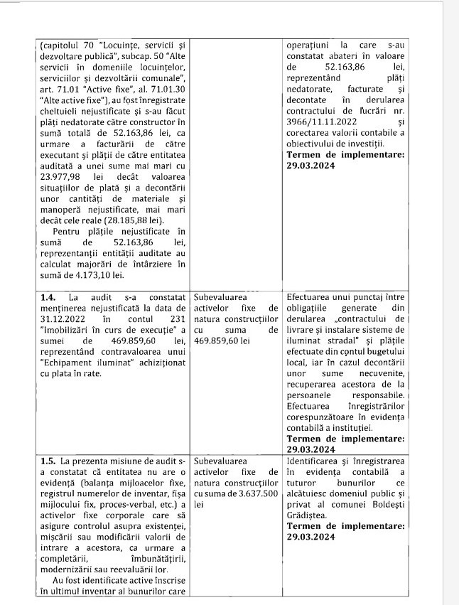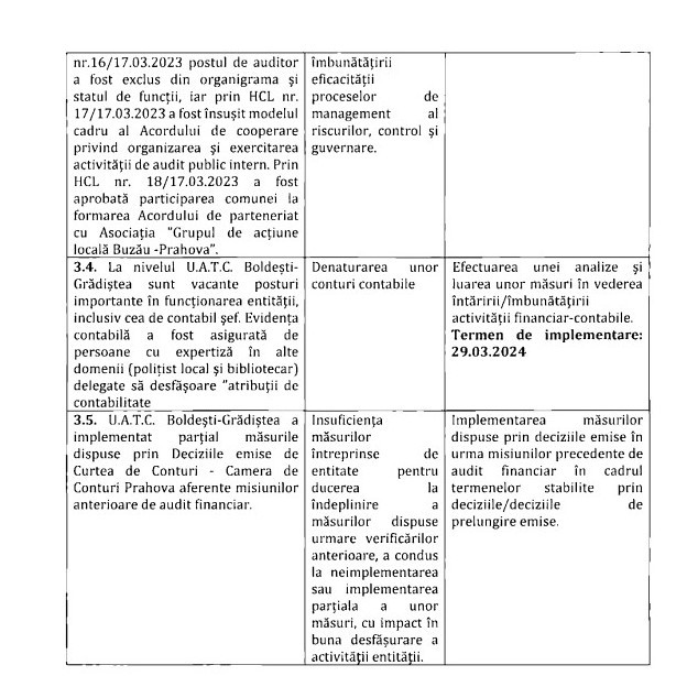 Pentru toate prejudiciile și abaterile constatate, Camera de Conturi Prahova a dat termene de rezolvare a recomandărilor. (foto: facsimil raport audit Camera de Conturi Prahova)