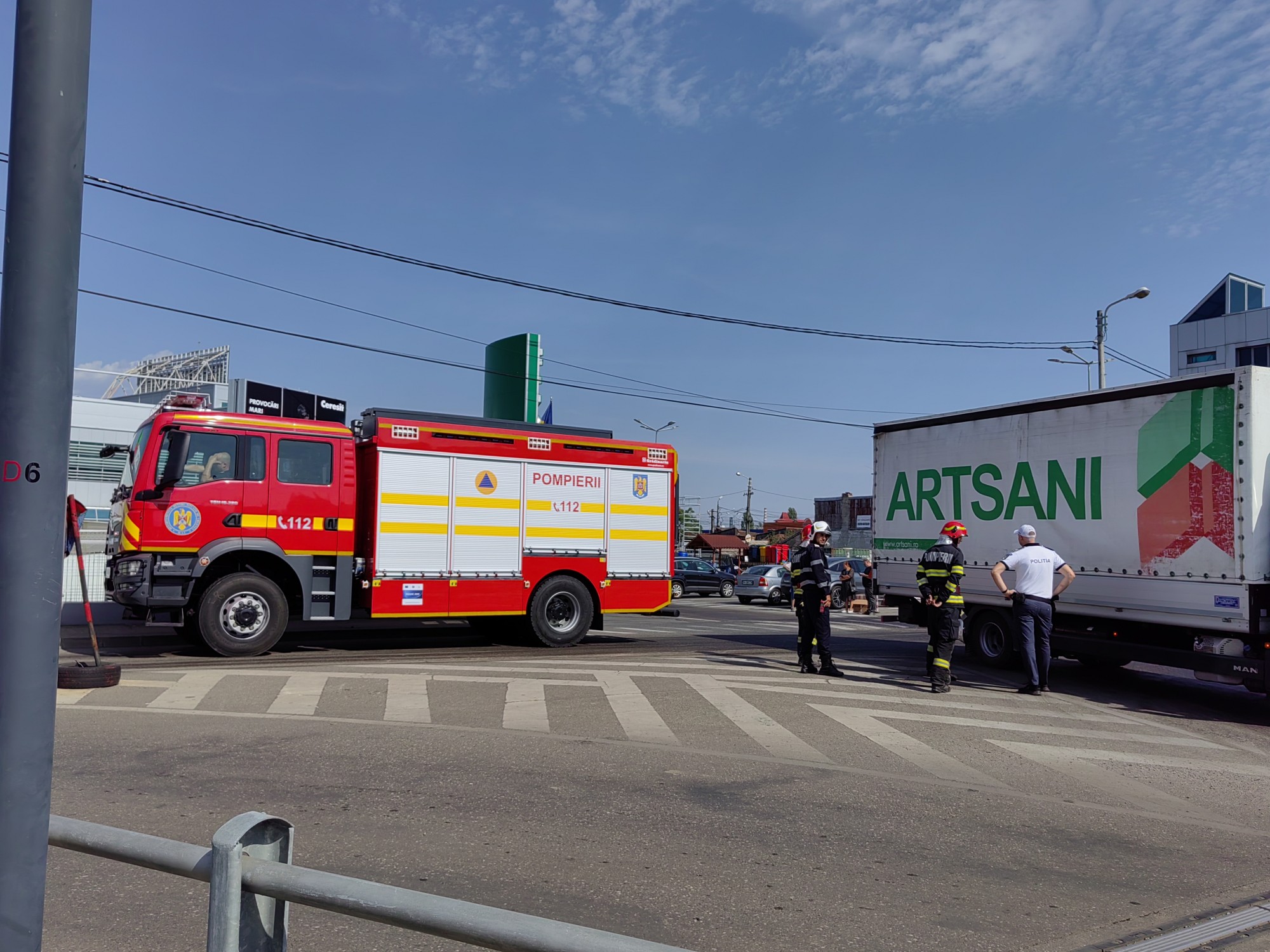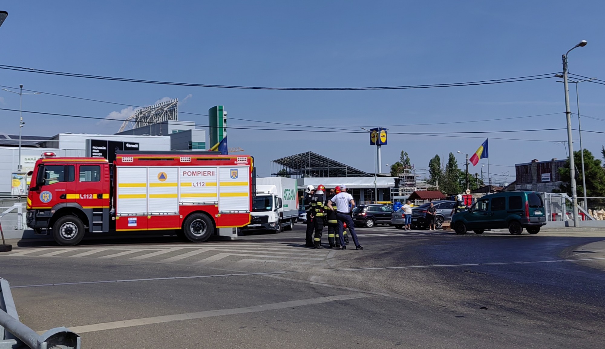 Pompierii au intervenit pe strada Apelor din Ploiești, pentru a înlătura pericolul după ce rezervorul unui autovehicul s-a spart într-un accident