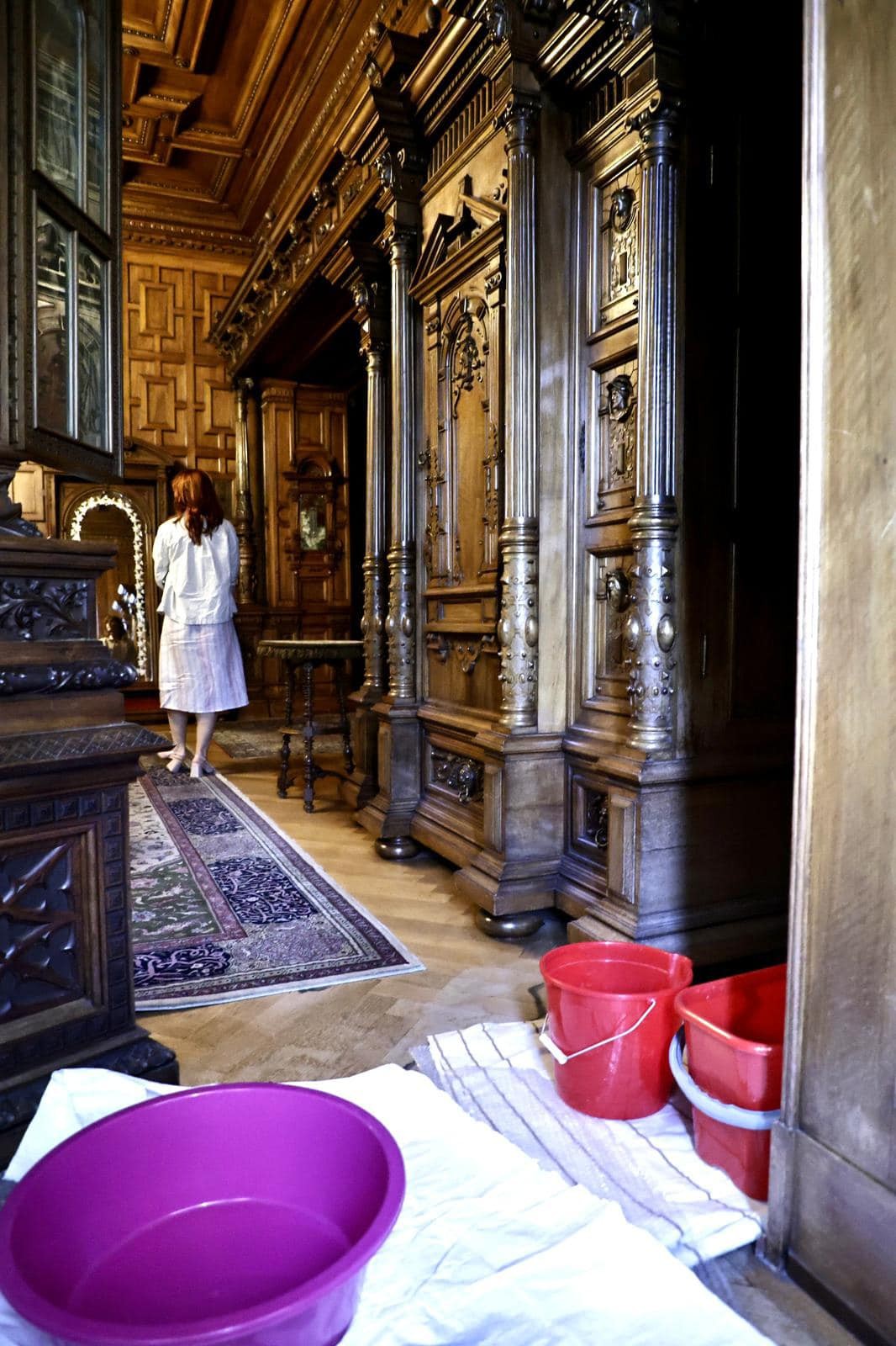 Gălețile și ligheanele au ajuns ”obiective de mare interes” în interiorul Castelului Peleș, pe care vizitatorii nu s-ar gândi vreodată că le-ar putea vedea pe culoarele sau în camerele impozantei clădiri de patrimoniu. Ce demersuri face Ministerul Culturii pentru salvarea Muzeului Peleș? Ministrul Culturii, Raluca Turcan, a anunțat că procedura de “intervenții de urgență” pentru acoperișurile Castelelor Peleș și Pelișor va începe în cel mai scurt timp, având în vedere necesitatea punerii în siguranță, dar și a protejării elementelor decorative și a componentelor artistice. ”Bugetul estimat pentru acest contract este de aproximativ 1,7 milioane de Euro, chiar astăzi fiind demarată procedura de atribuire. Nu mai puțin important este confortul turiștilor, iar Ministerul Culturii va realiza demersurile necesare pentru restaurări ale acestui complex care atrage un număr tot mai mare de vizitatori în fiecare an. Prin Institutul Național al Patrimoniului, Ministerul Culturii a finanțat elaborarea documentației tehnico-economice, faza DALI, pentru consolidarea, restaurarea și punerea în valoare a Teraselor Castelului Peleș, urmând ca soluția optimă să fie aprobată de Comisia Națională a Monumentelor Istorice, valoarea estimată a intervenției fiind cea corespunzătoare soluției avizate. De la înființarea sa ca muzeu, peste 8,5 milioane de vizitatori au trecut pragul Castelului Peleș. Dincolo de valoarea de patrimoniu a edificiilor integrate Muzeului Național Peleș, colecțiile ce pot fi admirate de vizitatori includ peste 60.000 de lucrări de artă plastică, arte decorative, arme și armuri, documente istorice și numeroase fotografii, multe dintre acestea fiind clasate în categoria Tezaur a patrimoniului cultural național.