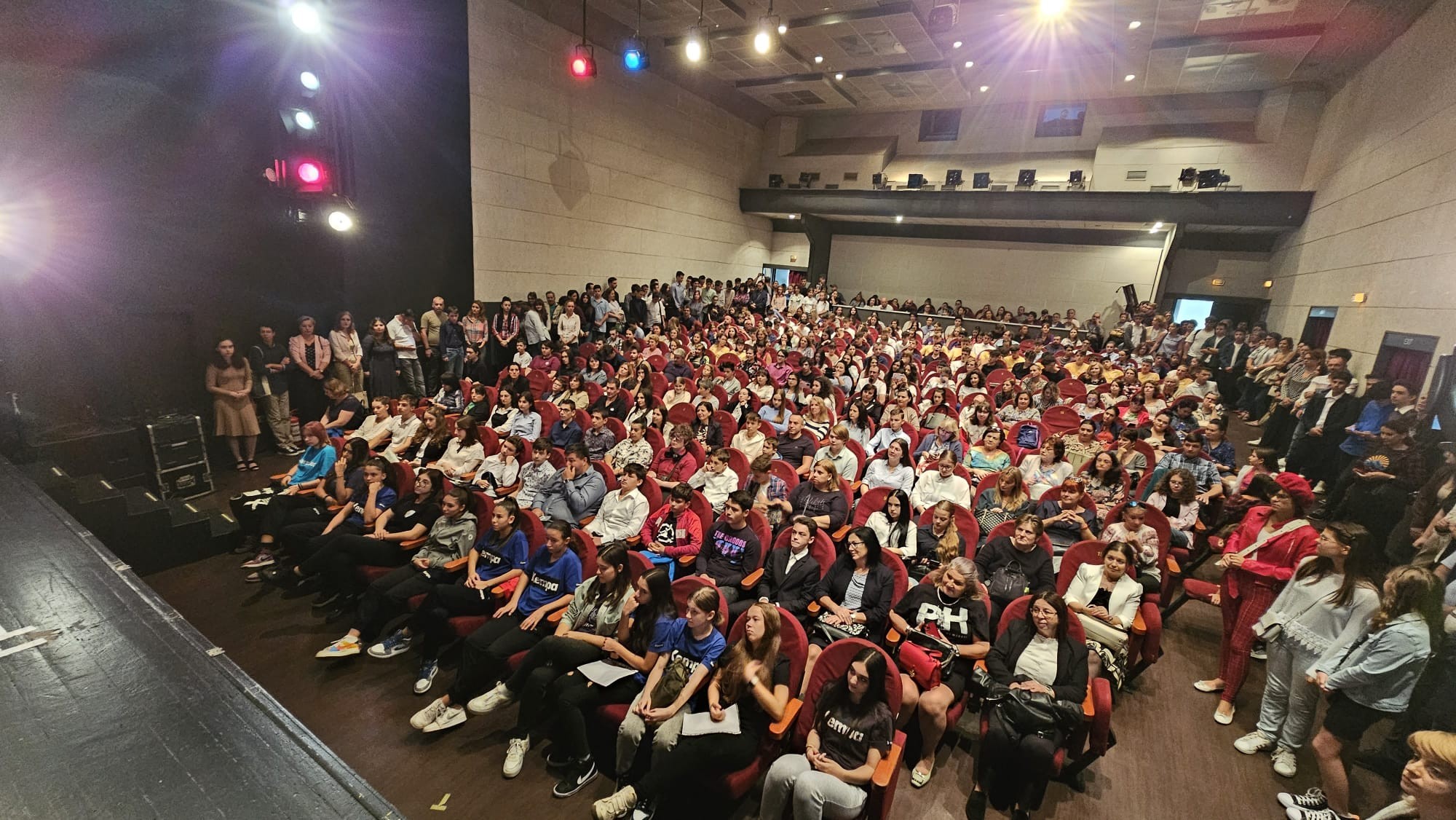 Sala Teatrului ”Toma Caragiu” din Ploiești, plină cu elevi olimpici, de Ziua Educației. Toți au fost premiați pentru rezultatele de excepție