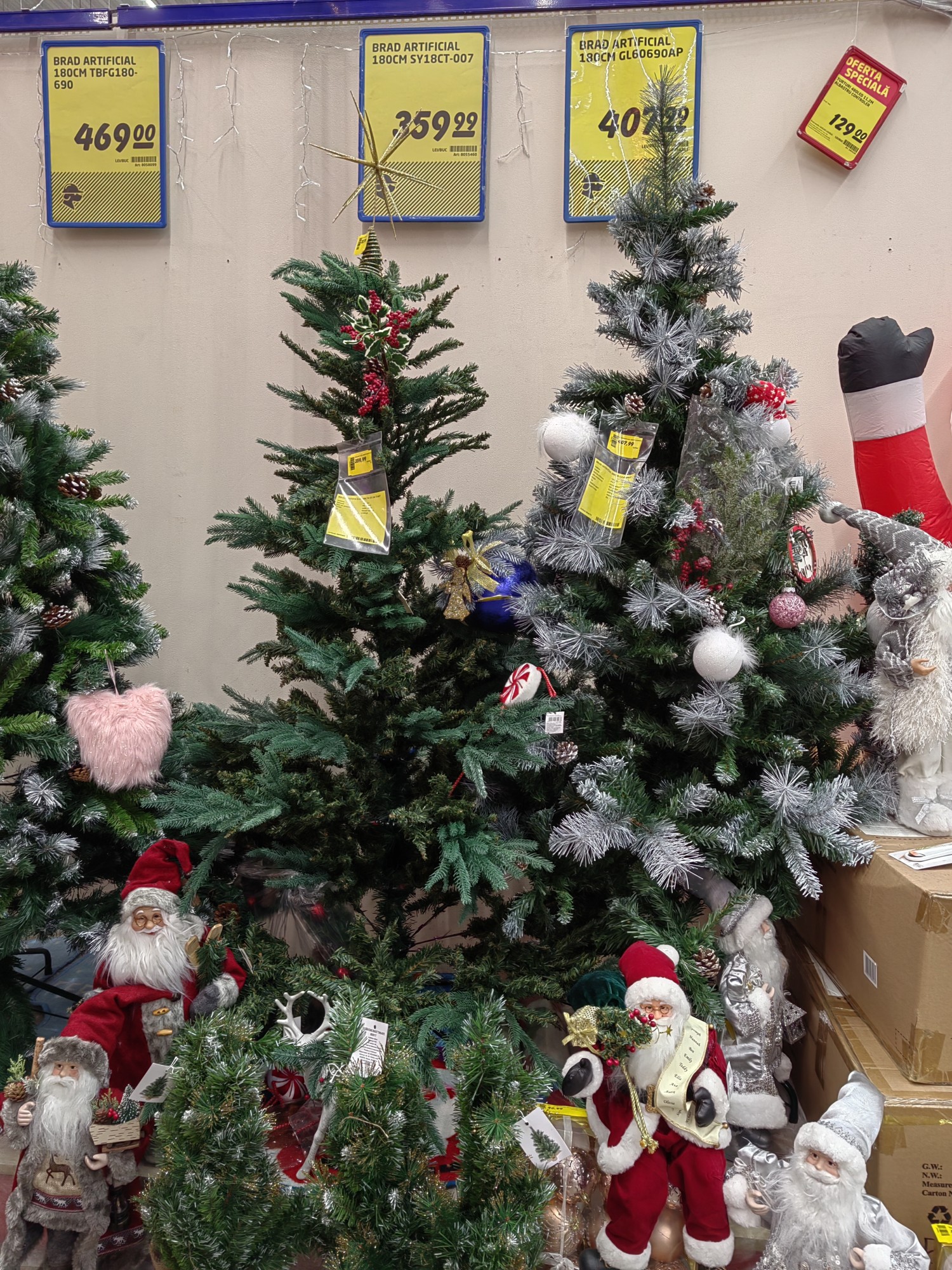 Sărbătorile de iarnă vin la pachet cu cheltuielile aferente, una dintre acestea fiind, fără discuție, achiziționarea bradului de Crăciun. Pentru cine dorește să păstreze tradiția și nu dispune de un buget prea mare, pe piața din Ploiești există brăduți naturali, tăiați, de până la 100 de lei, de dimensiuni reduse. La prețuri puțin mai mari, care ajung la 200 de lei, sunt brăduți în ghiveci, care dacă rezistă în căldura casei și sunt îngrijiți corespunzător, pot fi ulterior plantați în grădină. Pentru cei cu dare de mână sunt și brazi naturali tăiați, cu aspect perfect, care costa câteva sute de lei, în funcție de dimensiune, dar și pomi de Crăciun artificiali care costă cel puțin cât un salariu minim pe economie. (detalii în fotografiile de mai jos).