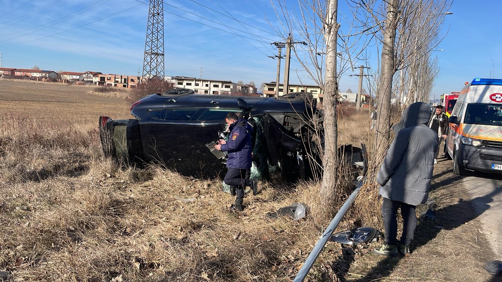 Un autoturism s-a răsturnat în afara carosabilului, după o coliziune între trei autovehicule, la ieșire din Ploiești spre Păulești