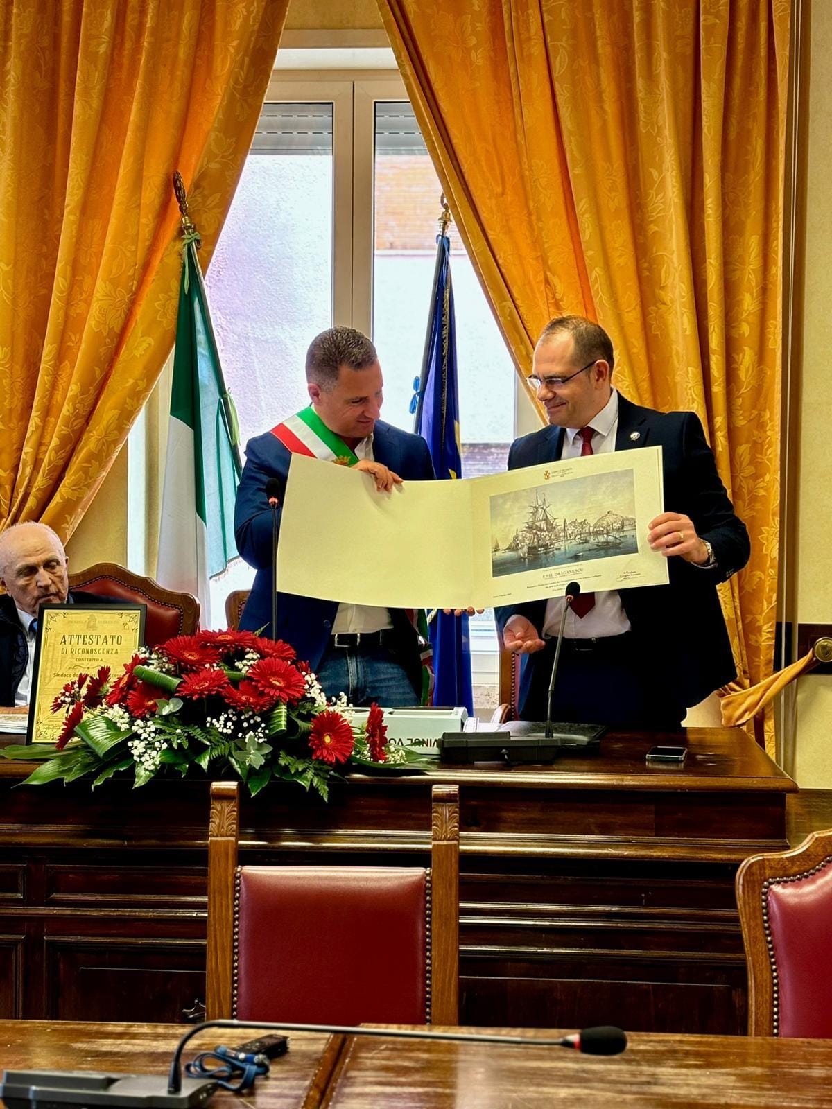 Delegația prahoveană prezentă în Italia, în cadrul proiectului cultural-istoric ”Dimensiunea europeană a lui Vlad Țepeș”, a fost primită, luni, 7 octombrie, în plenul Consiliului Local Gaeta, de primarul Cristian Leccese. Trebuie menționat că la acțiunea găzduită de Primăria Gaeta au participat și reprezentanți ai Asociației Românilor din Lazio, fiind bine-cunoscut faptul că în orașul Gaeta lucrează peste 2000 de conaționali.
