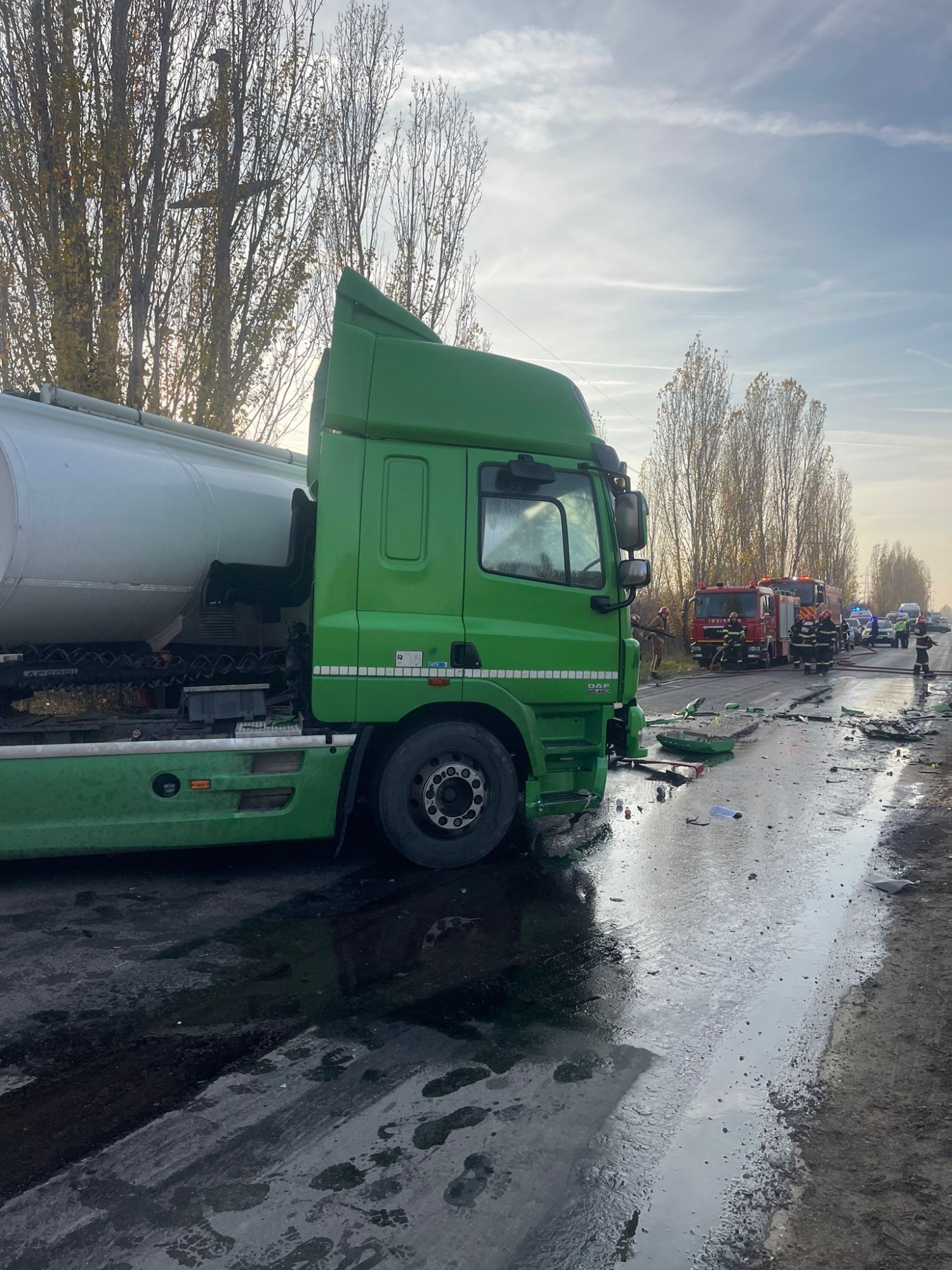 Circulația rutieră este blocată complet, luni după-amiază (ora 15:15), pe Centura de Est a Ploieștiului. Potrivit informațiilor de la fața locului, traficul a fost întrerupt din cauza coliziunii dintre două cisterne, în zona Moara Nouă. În zona respectivă se află mai multe autospeciale ale pompierilor. Potrivit ISU Prahova, ”intervin pompierii militari din cadrul Detașamentului 1 Ploiești cu două autospeciale de stingere, o autospecială pentru descarcerare si, în sprijin, două ambulanțe SAJ Prahova. În eveniment sunt implicate două autocisterne (dintre care una fără încărcătură și una încărcată cu 33 T de motorină) și un autoturism. La bordul acestora se aflau doar șoferii, dintre care unul este asistat medical la fața locului. Nu sunt înregistrate scurgeri de motorină (din cea transportată), ci doar din carburantul regăsit în rezervorul autovehiculelor implicate. Pompierii asigură la fața locului măsurilor specifice de prevenire a incendiilor. Șoferul cisternei fără încărcătură, un bărbat în vârstă de aproximativ 52 ani, este transportat la spital, conștient, pentru investigații și îngrijiri suplimentare”. Centrul Infotrafic al Poliției Române precizează că traficul rutier este oprit pe ambele sensuri pentru a permite intervenția echipajelor specializate și se estimează reluarea normală a circulației după ora 17:00. (sursa imagine: Grup Info Trafic Prahova, ISU Prahova)